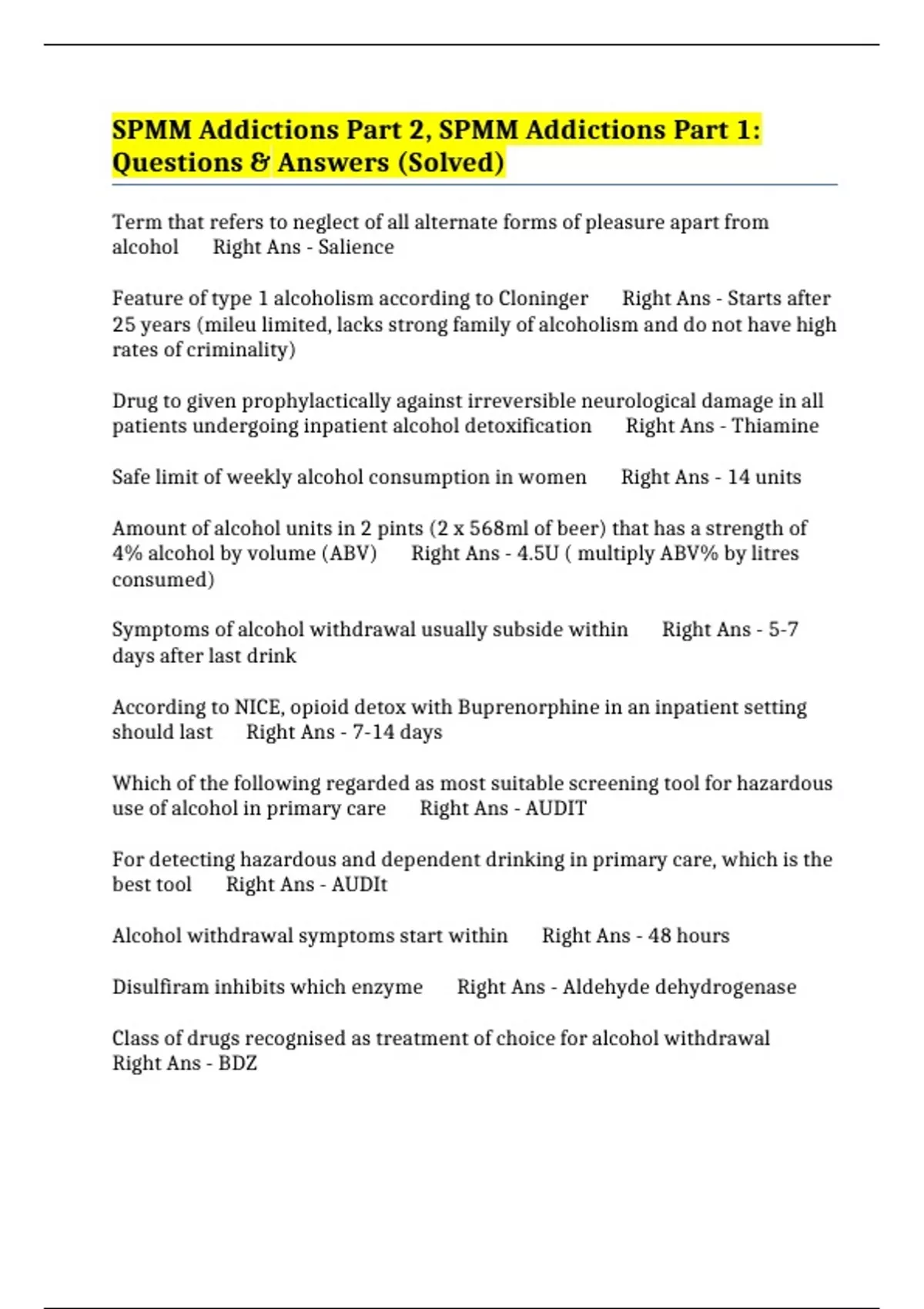 alcohol Right Ans - Salience