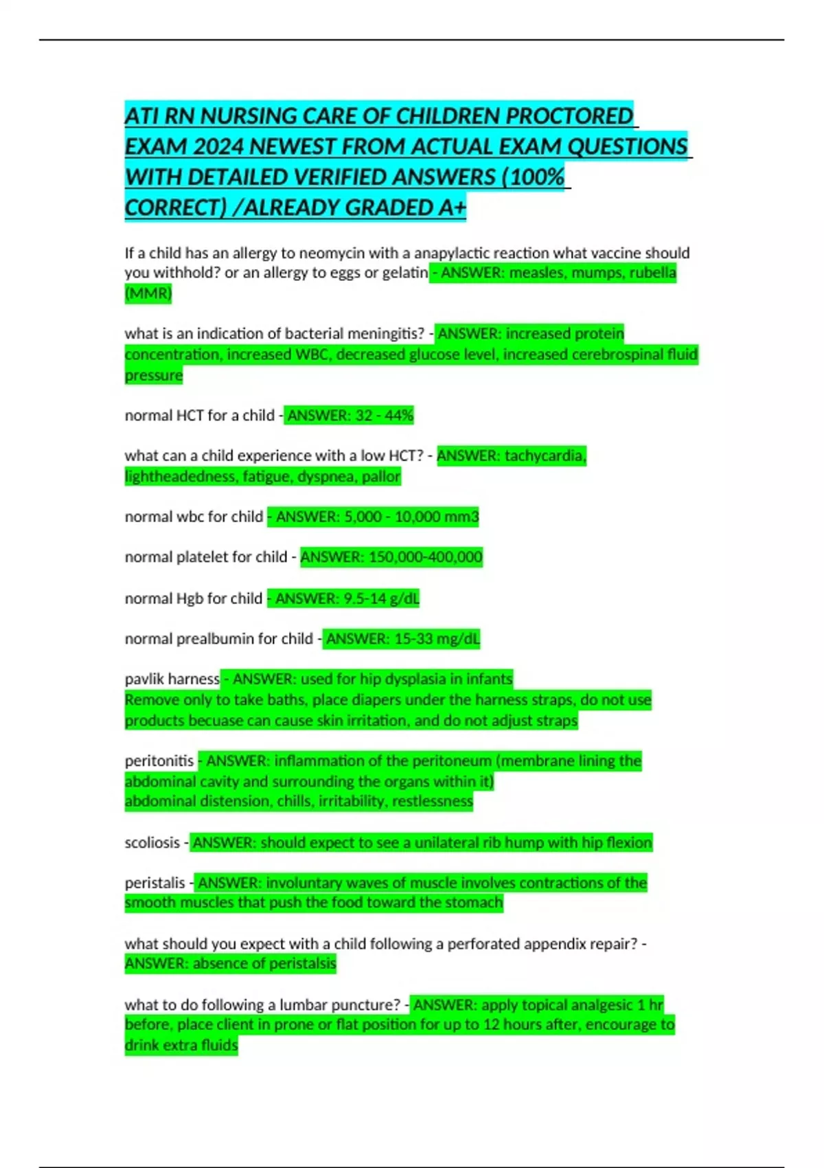 ATI RN NURSING CARE OF CHILDREN PROCTORED