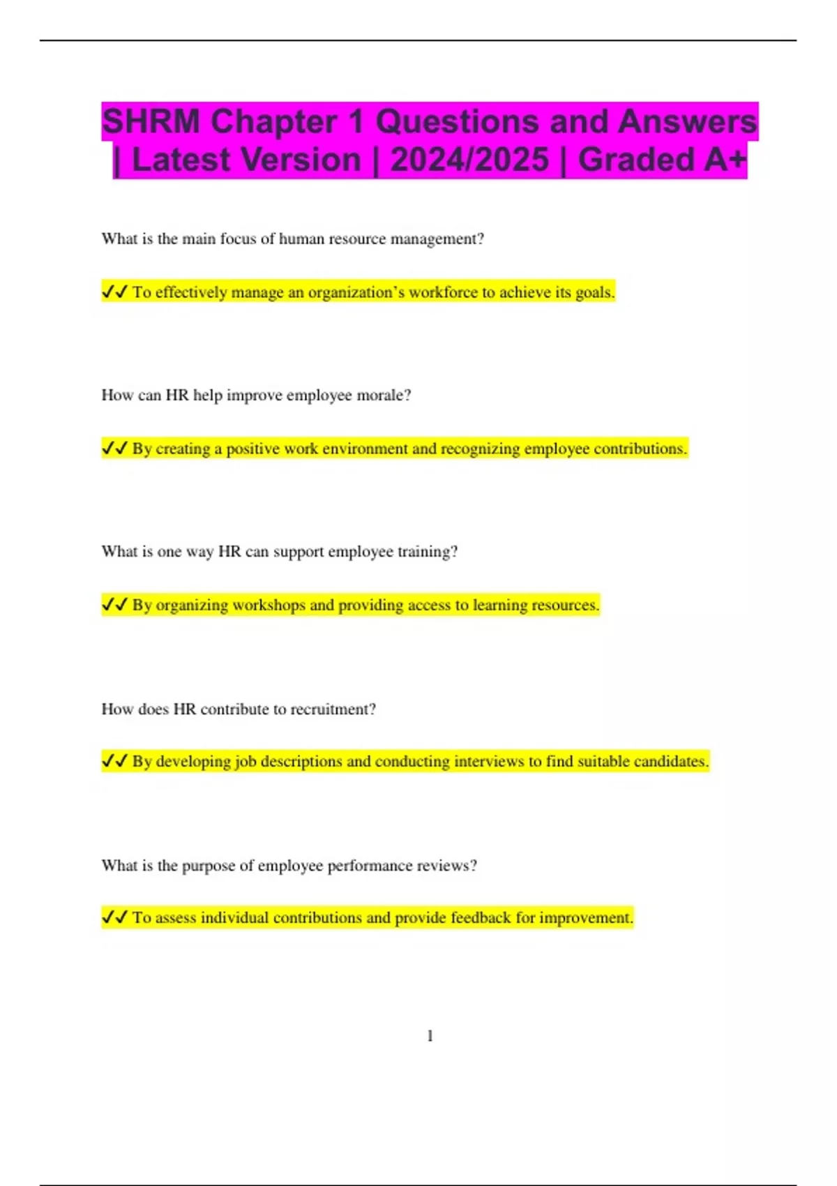 ✔✔ To effectively manage an organization’s workforce to achieve its goals.