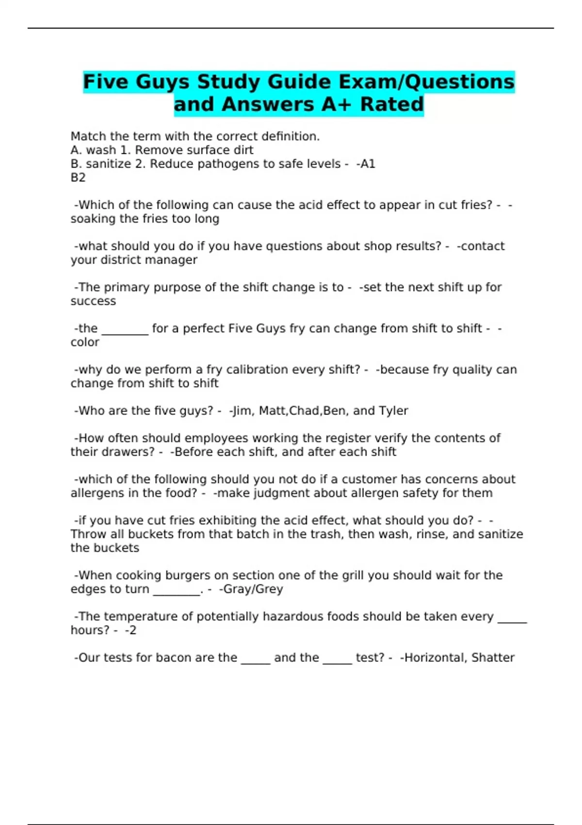 -the ________ for a perfect Five Guys fry can change from shift to shift - -