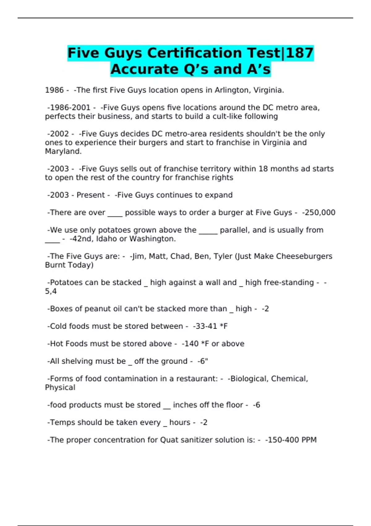 Five Guys Certification Test|187