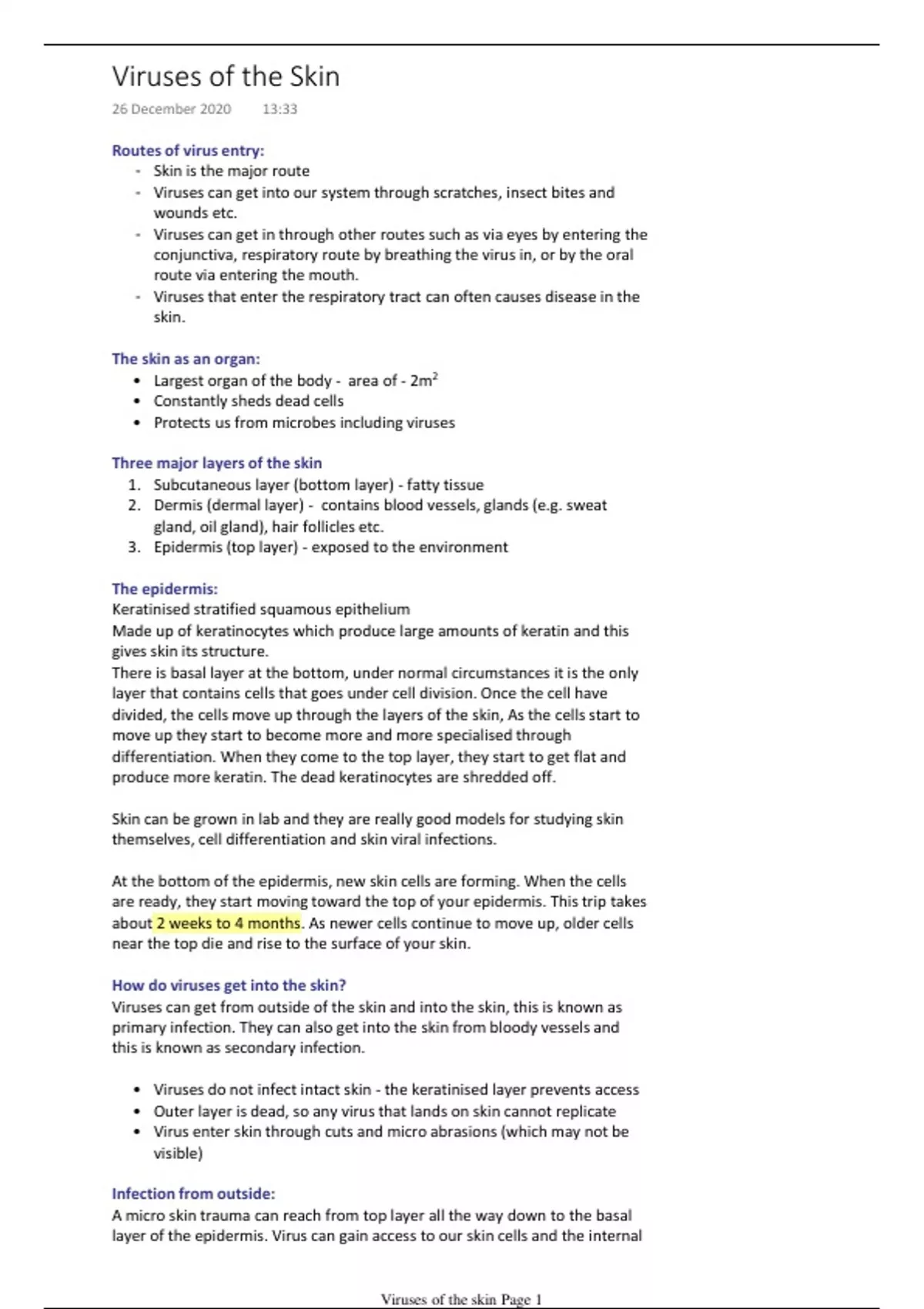 • Viruses do not infect intact skin - the keratinised layer prevents access