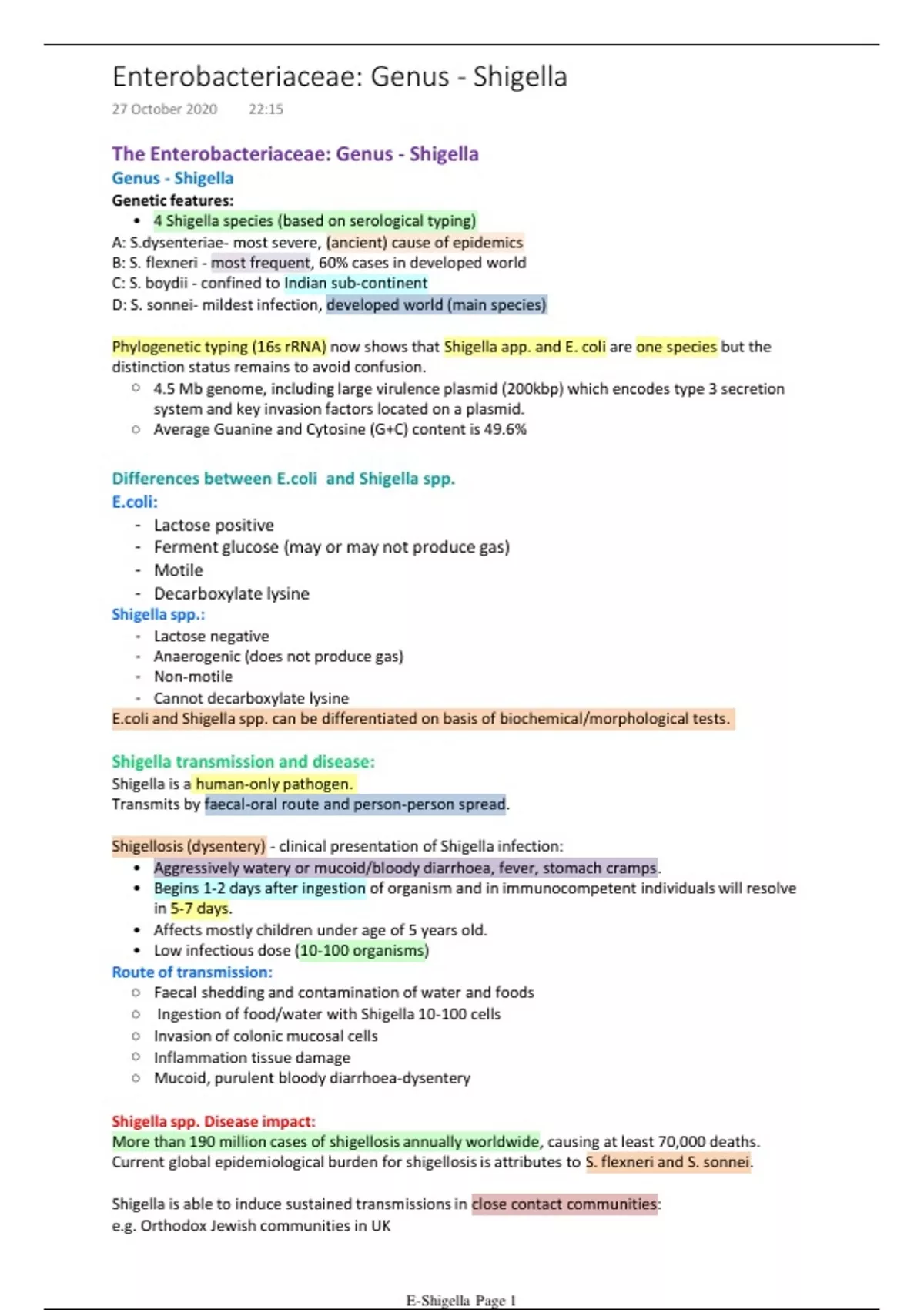 Phylogenetic typing (16s rRNA) now shows that Shigella app. and E. coli are one species but the