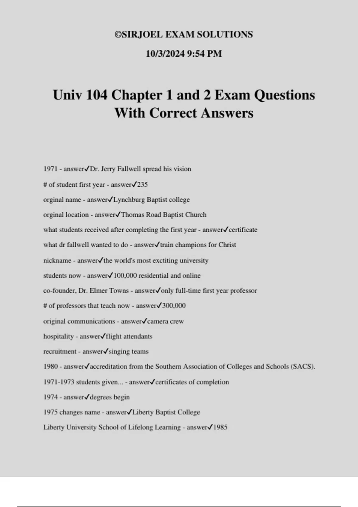 Liberty University School of Lifelong Learning - answer✔1985