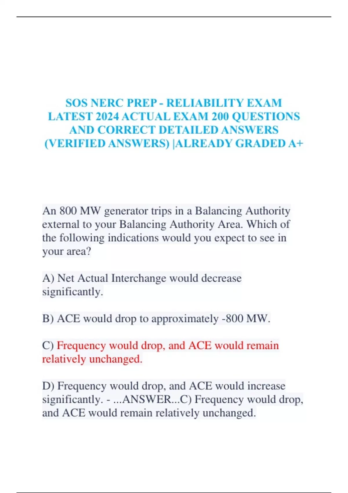 Exam of 101 pages for the course HESI EXIT EXAM 2024.docx at HESI EXIT EXAM 2024.docx (SOS NERC PREP.pdf)