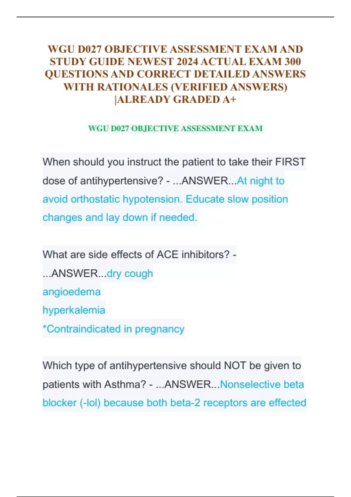 WGU D027 OBJECTIVE ASSESSMENT EXAM AND