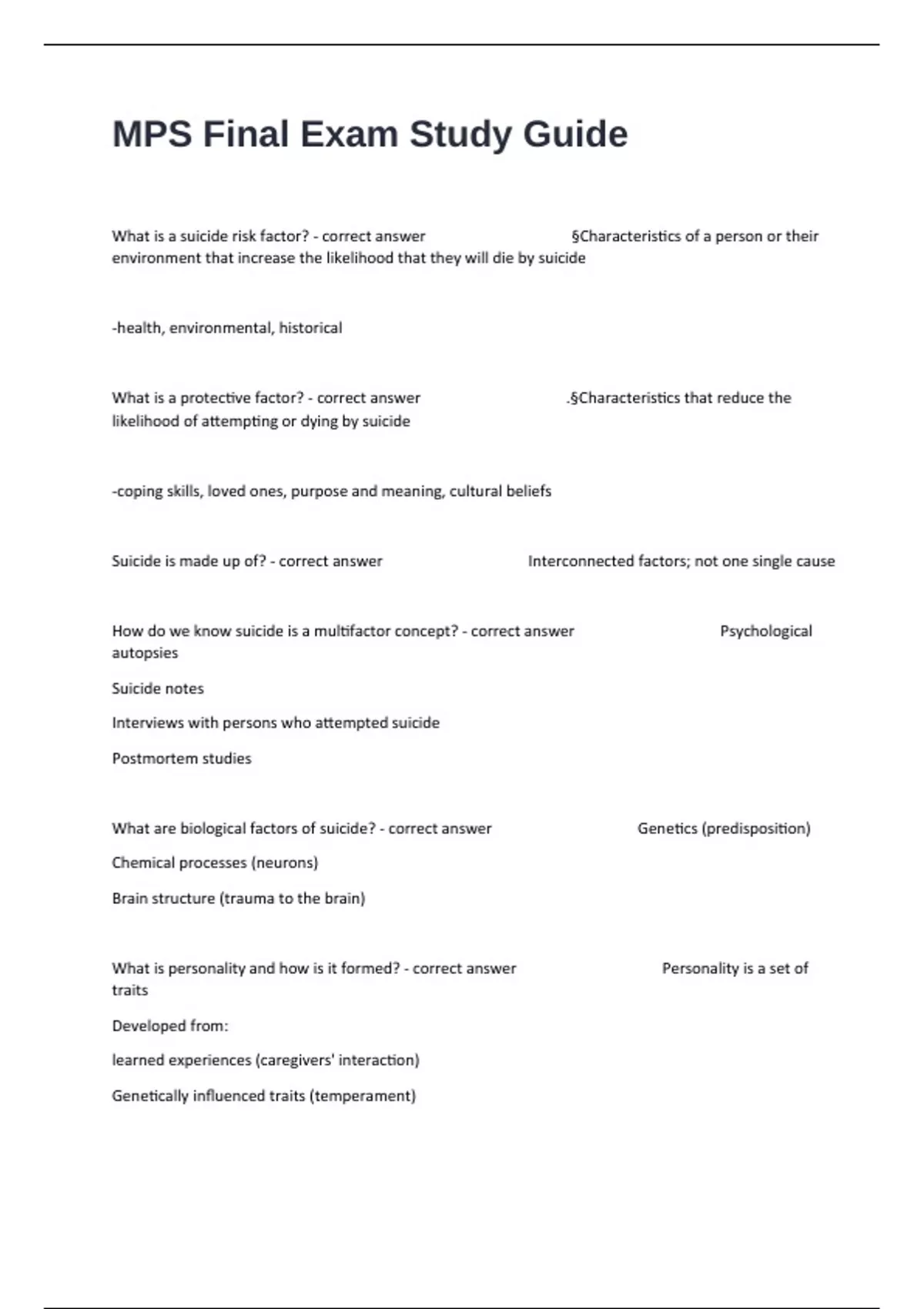 What are biological factors of suicide? - correct answer Genetics (predisposition)