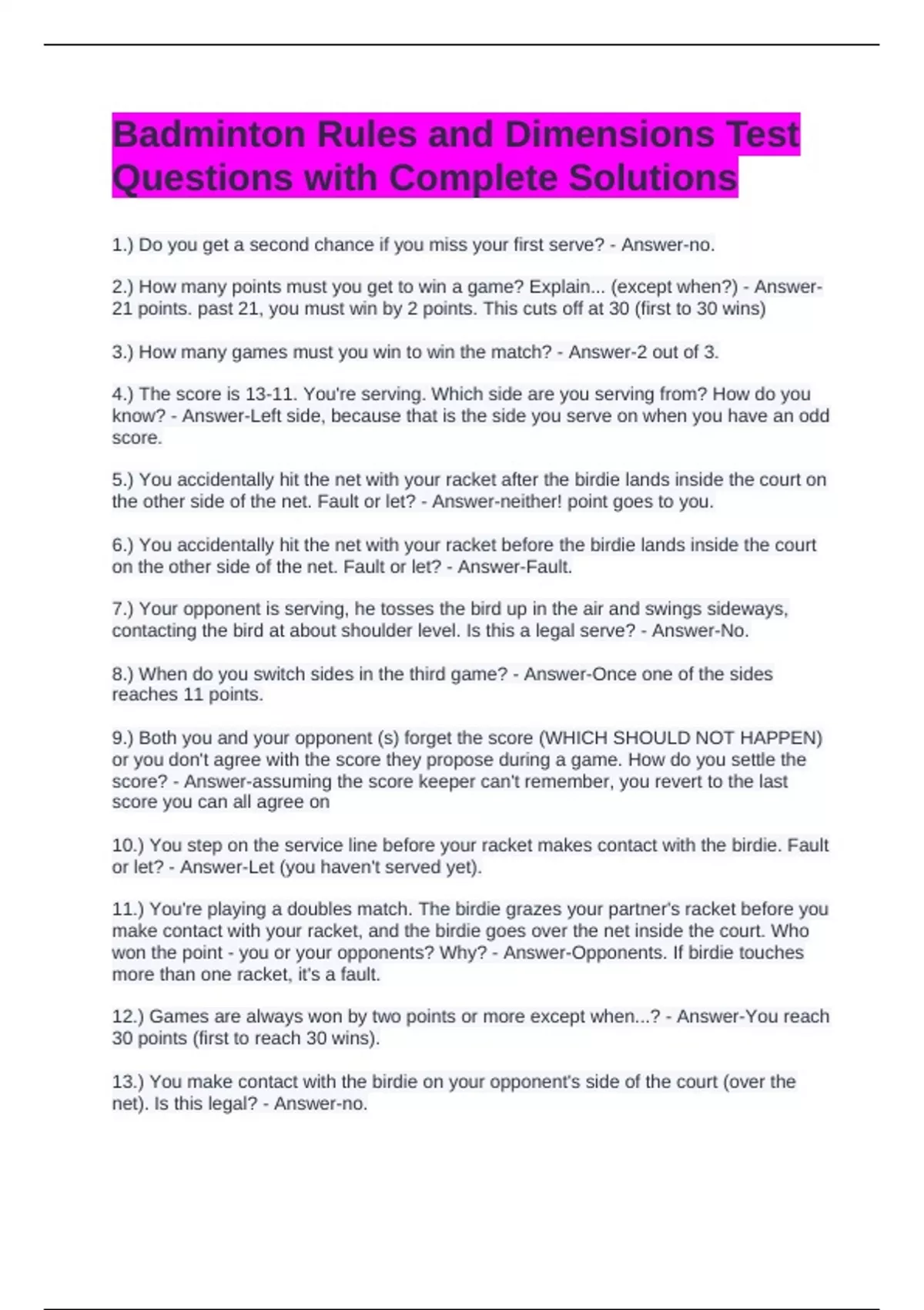 12.) Games are always won by two points or more except when...? - Answer-You reach