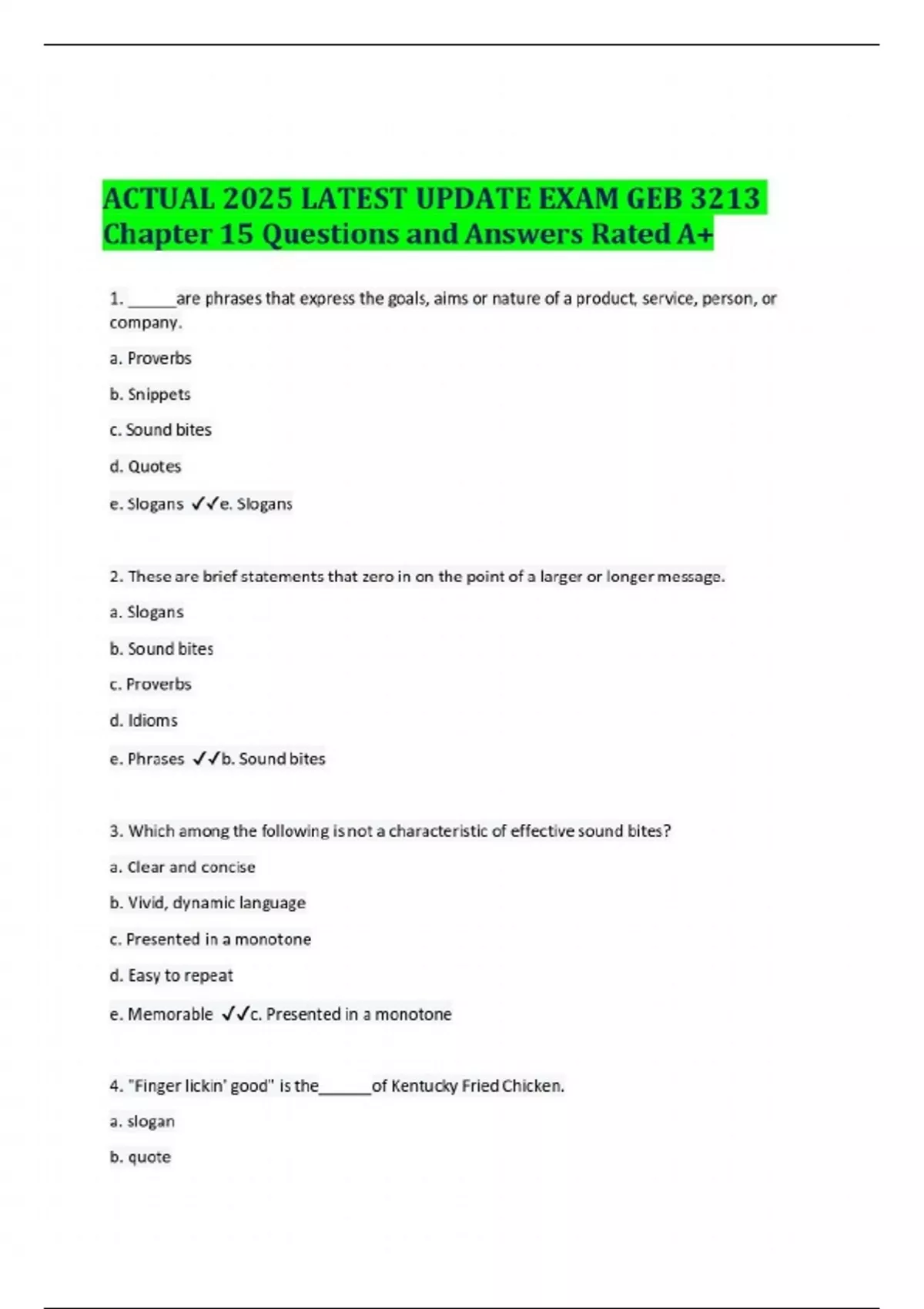 actual 2025 latest update exam geb 3213 chapter 15