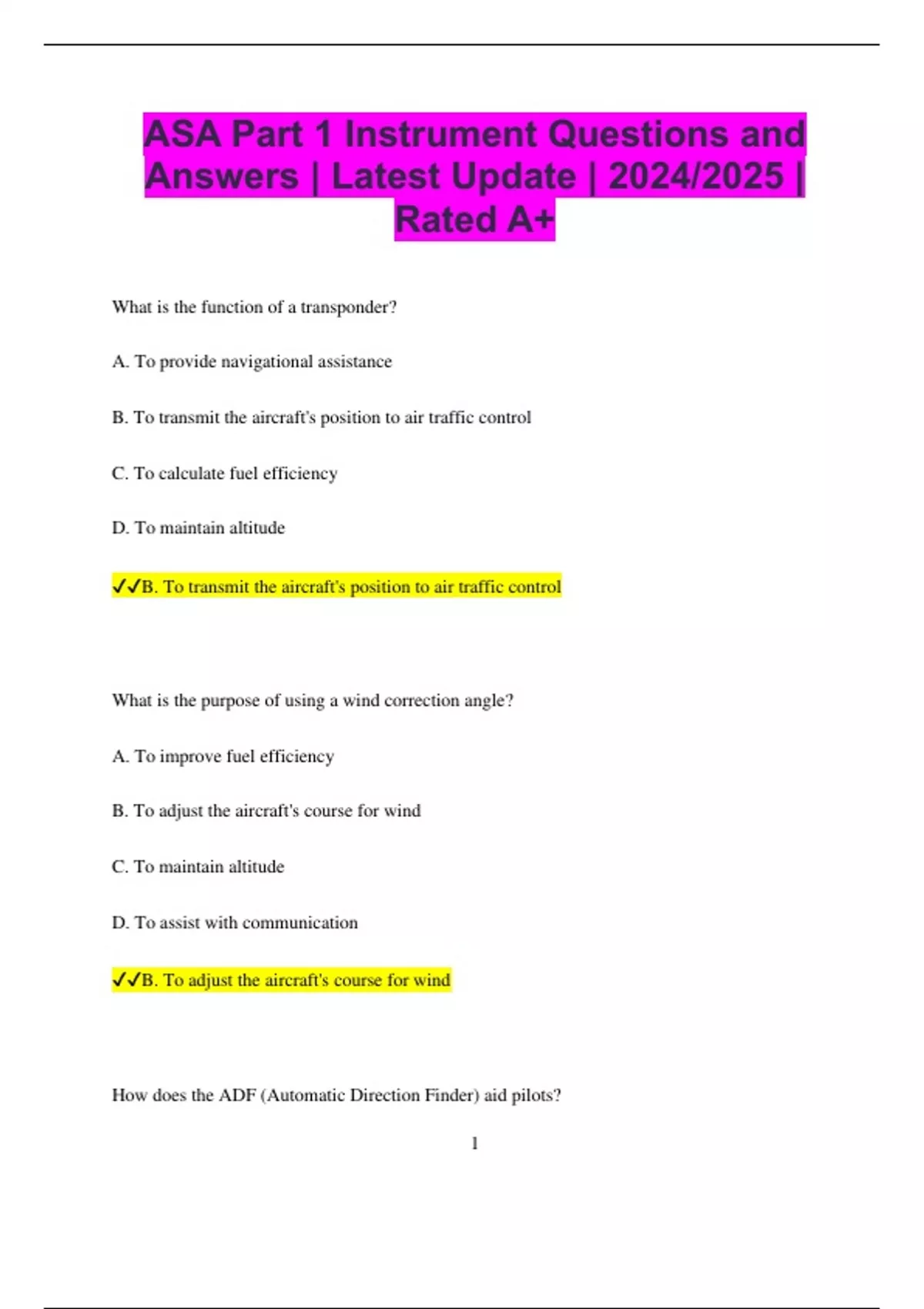 ✔✔B. To adjust the aircraft's course for wind