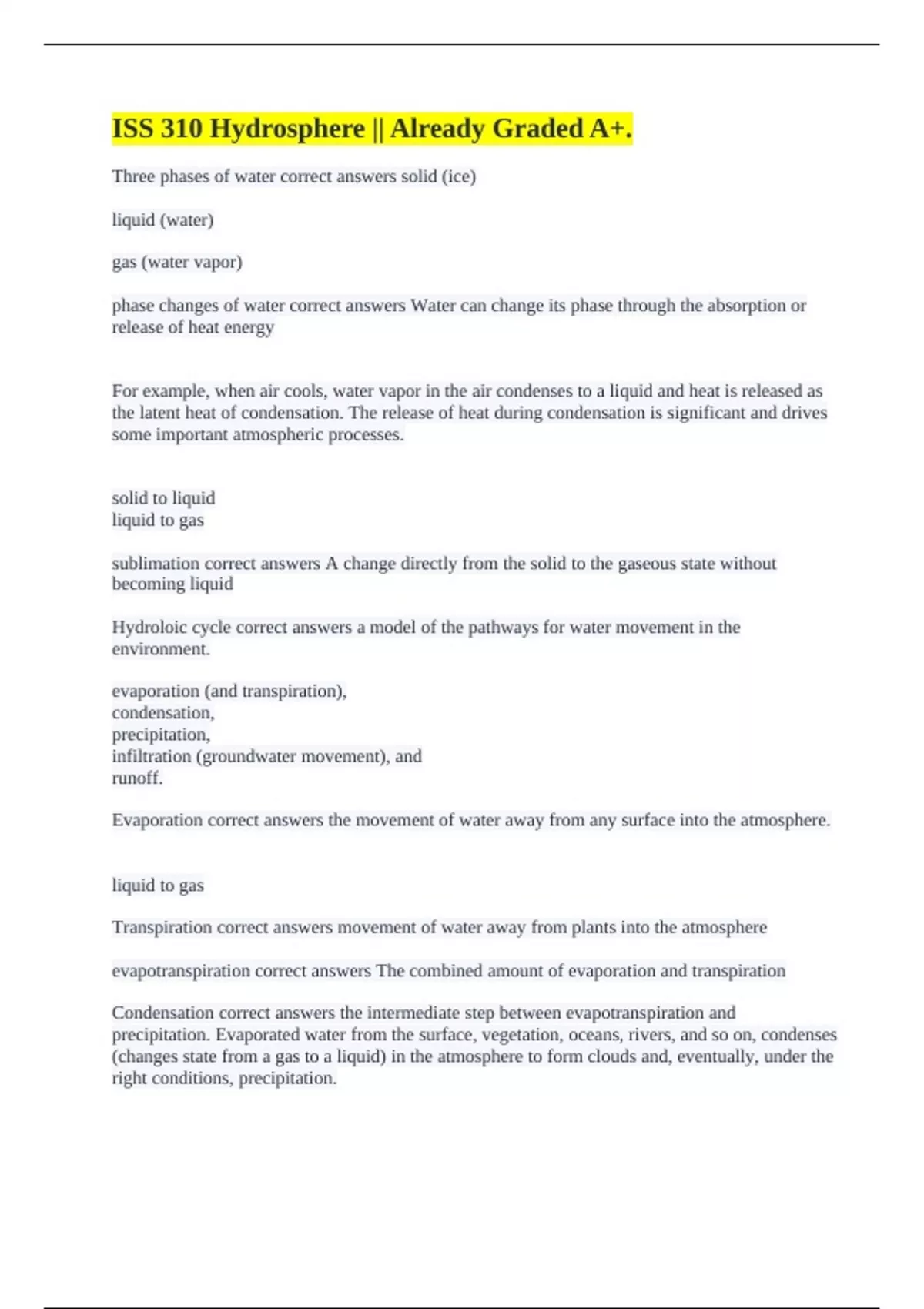 Hydroloic cycle correct answers a model of the pathways for water movement in the