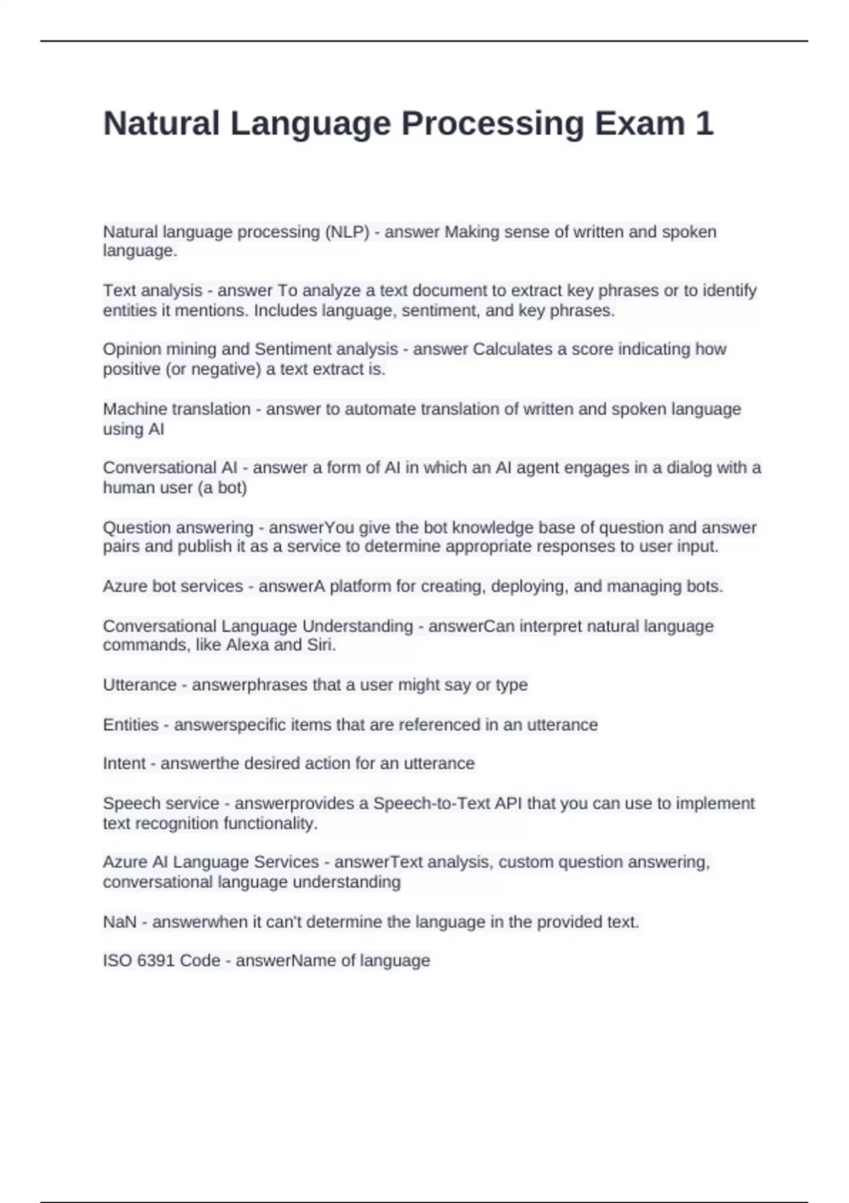 Natural language processing (NLP) - answer Making sense of written and spoken