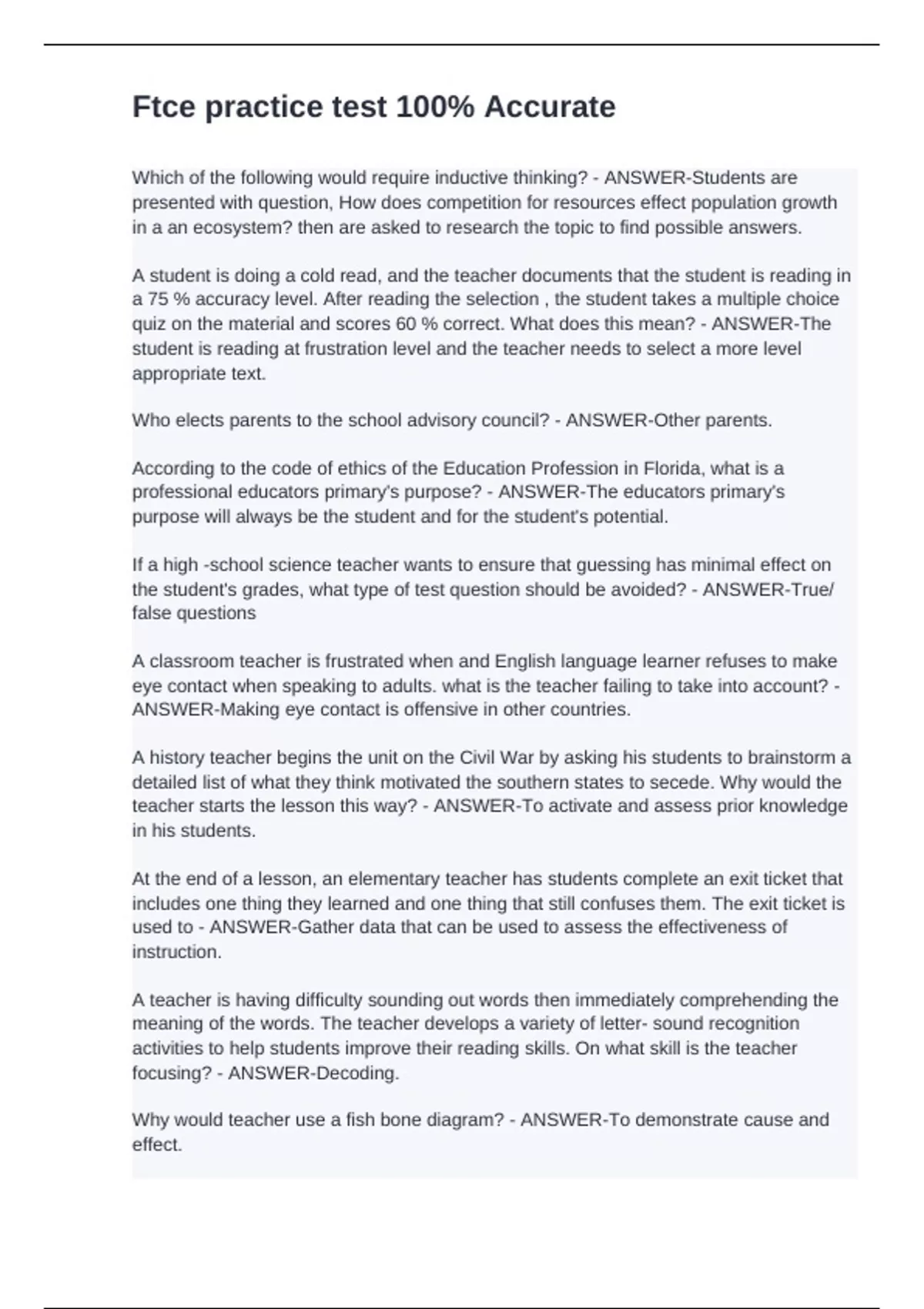Which of the following would require inductive thinking? - ANSWER-Students are
