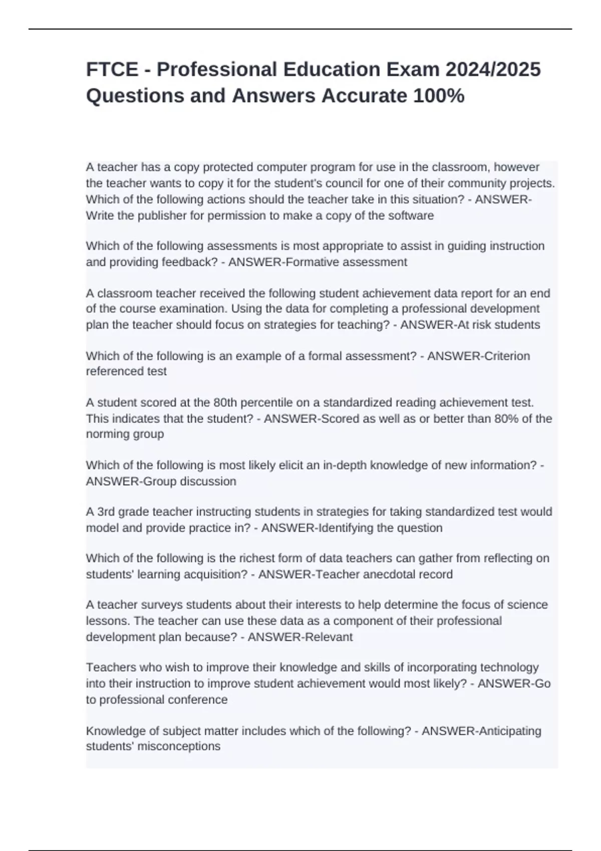 Questions and Answers Accurate 100%