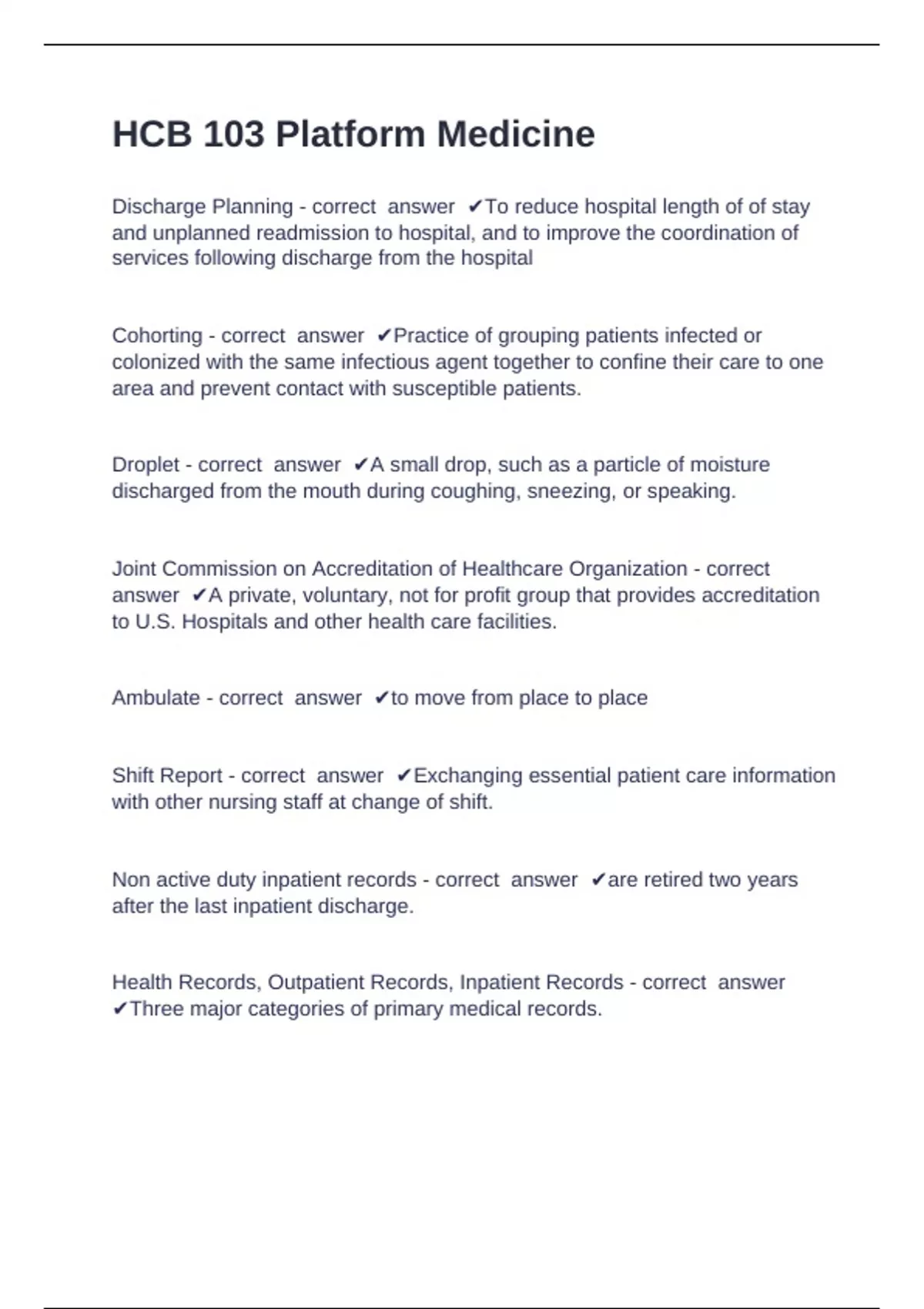 Joint Commission on Accreditation of Healthcare Organization - correct