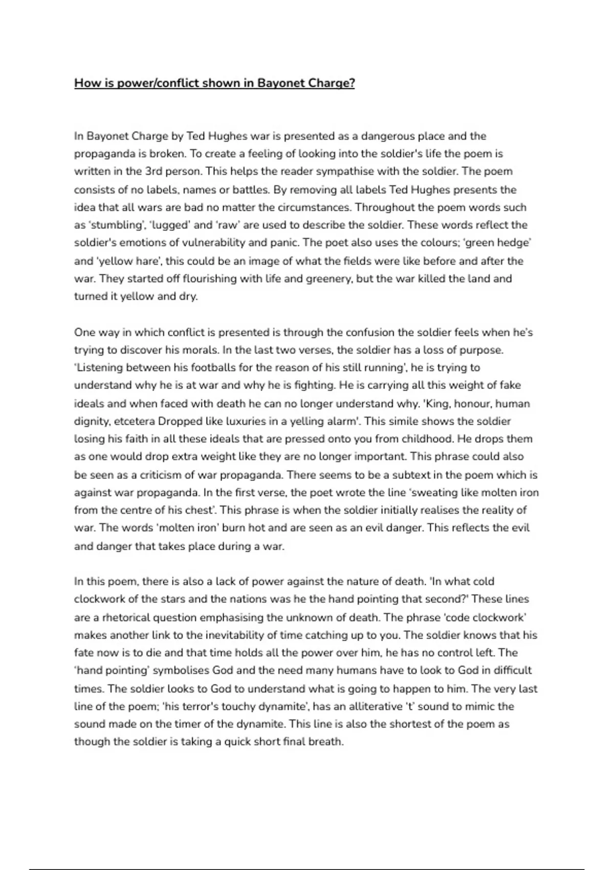 In Bayonet Charge by Ted Hughes war is presented as a dangerous place and the