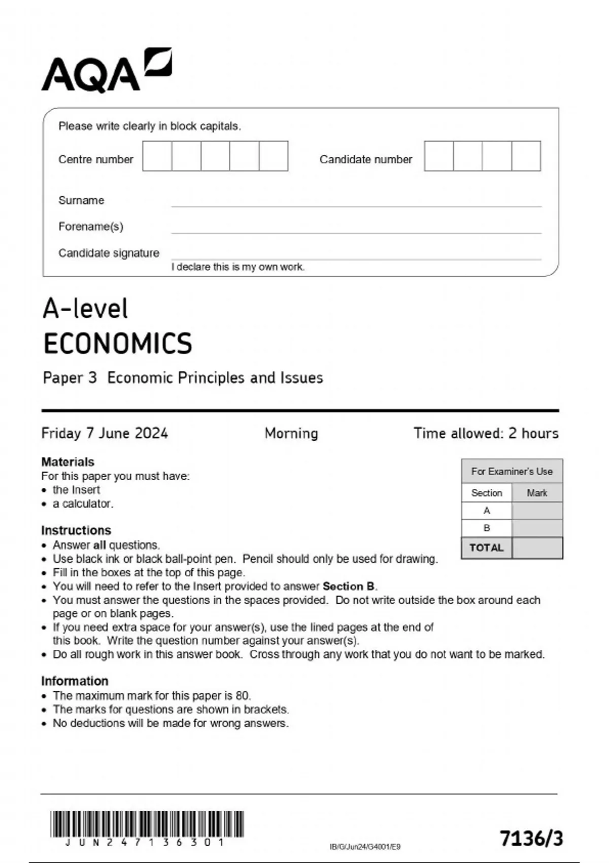 A-Level AQA 2025 Economics Paper 3
