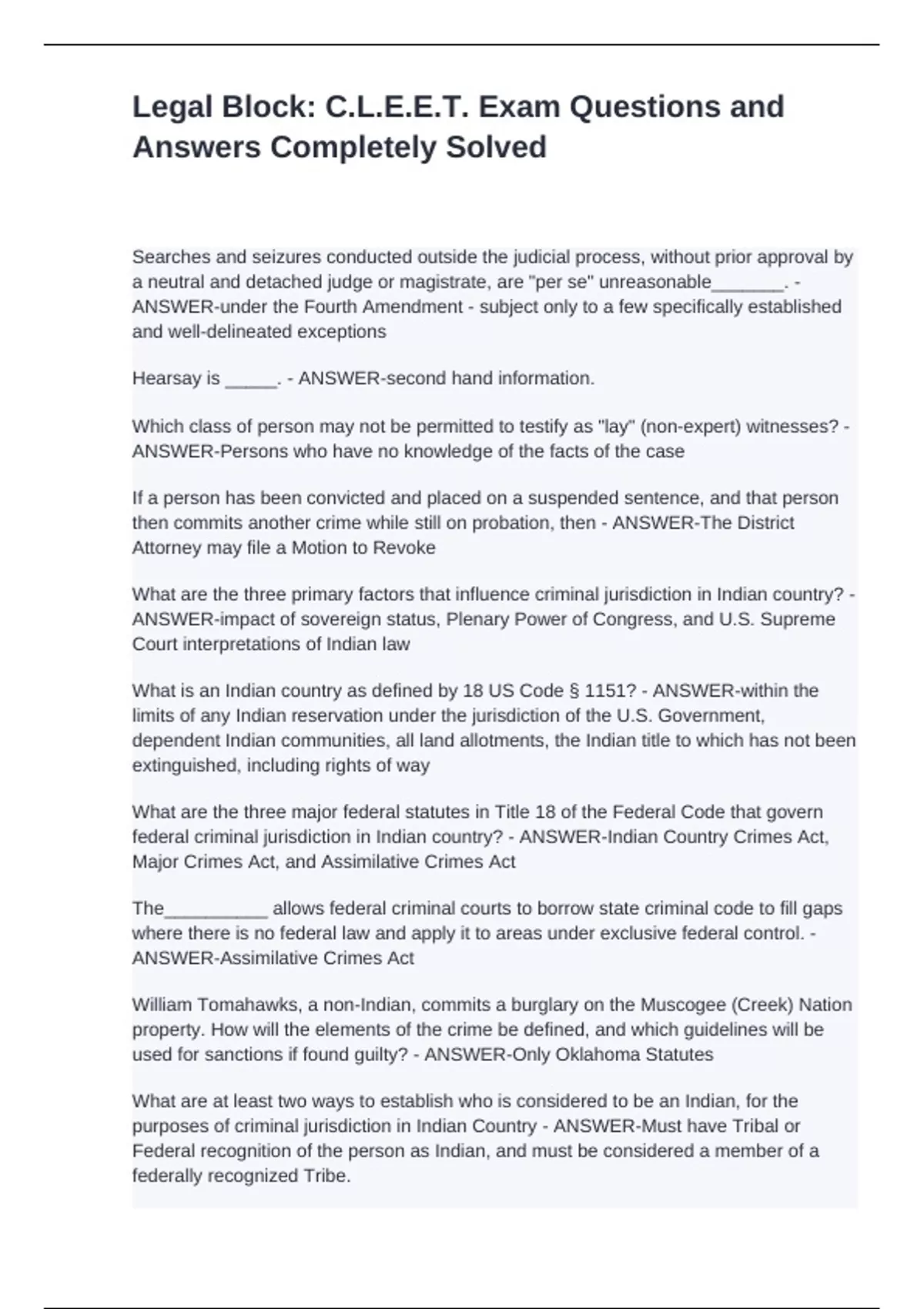 purposes of criminal jurisdiction in Indian Country - ANSWER-Must have Tribal or