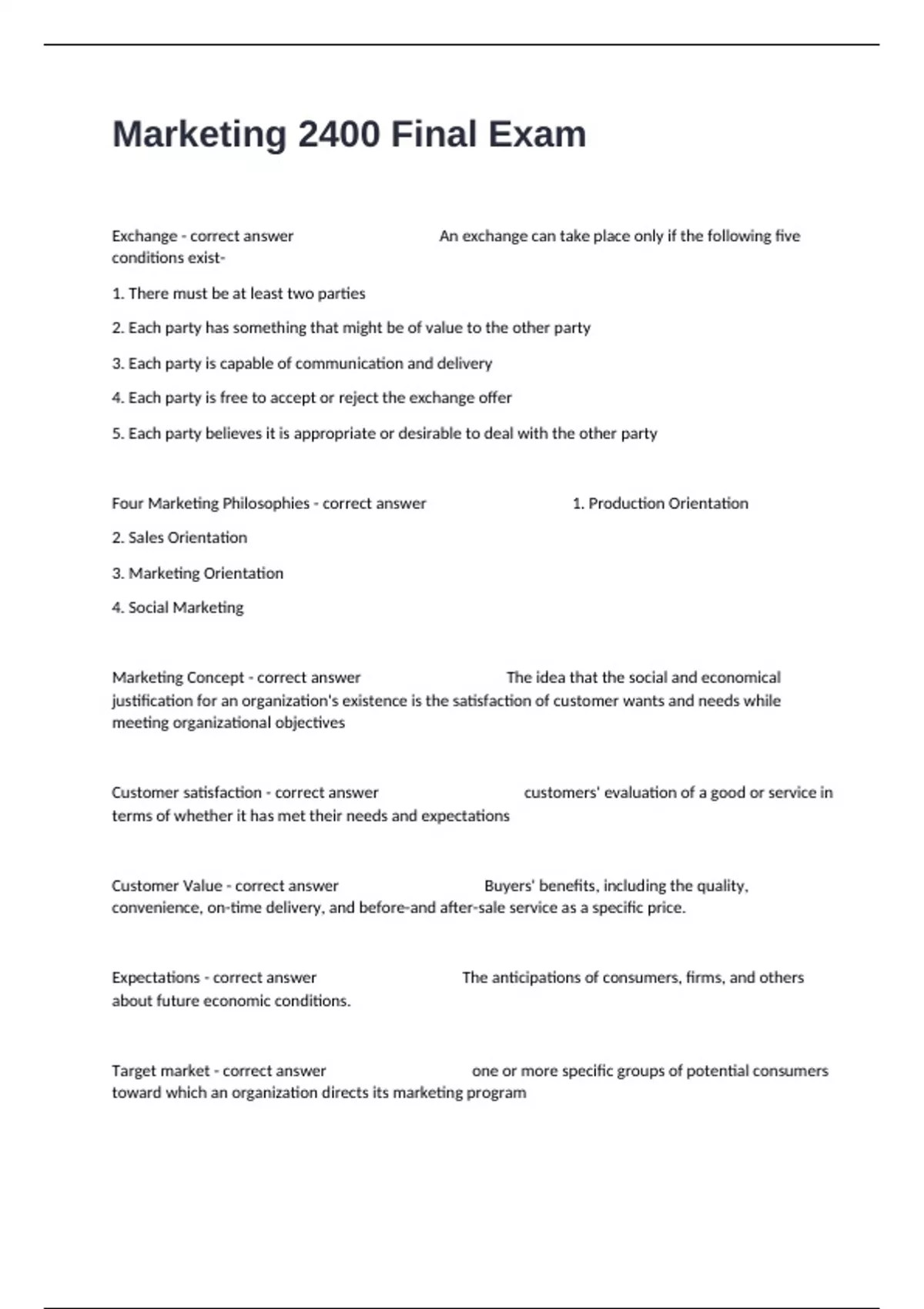 Marketing 2400 Final Exam Complete Questions With Verified Guaranteed Answers.