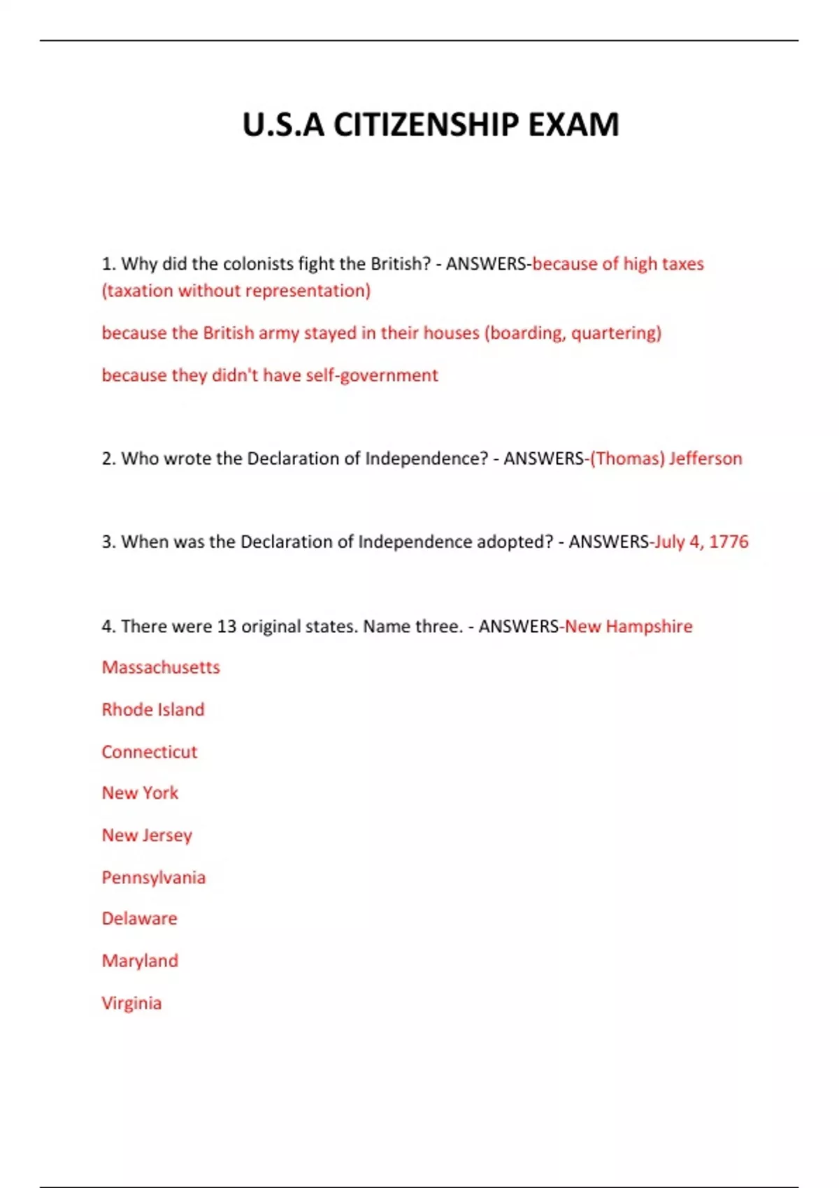 4. There were 13 original states. Name three. - ANSWERS-New Hampshire