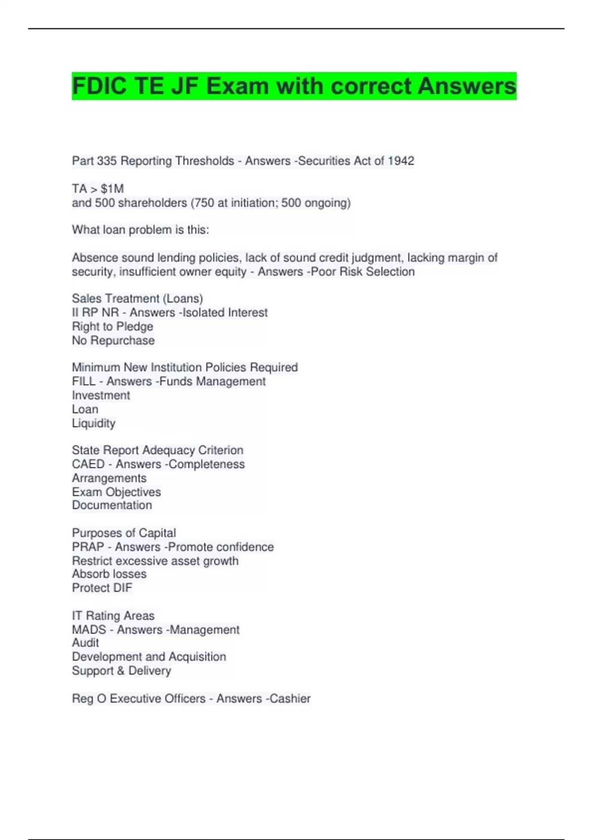 Part 335 Reporting Thresholds - Answers -Securities Act of 1942
