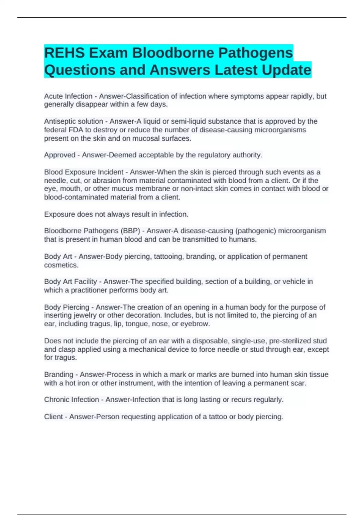 REHS Exam Bloodborne Pathogens