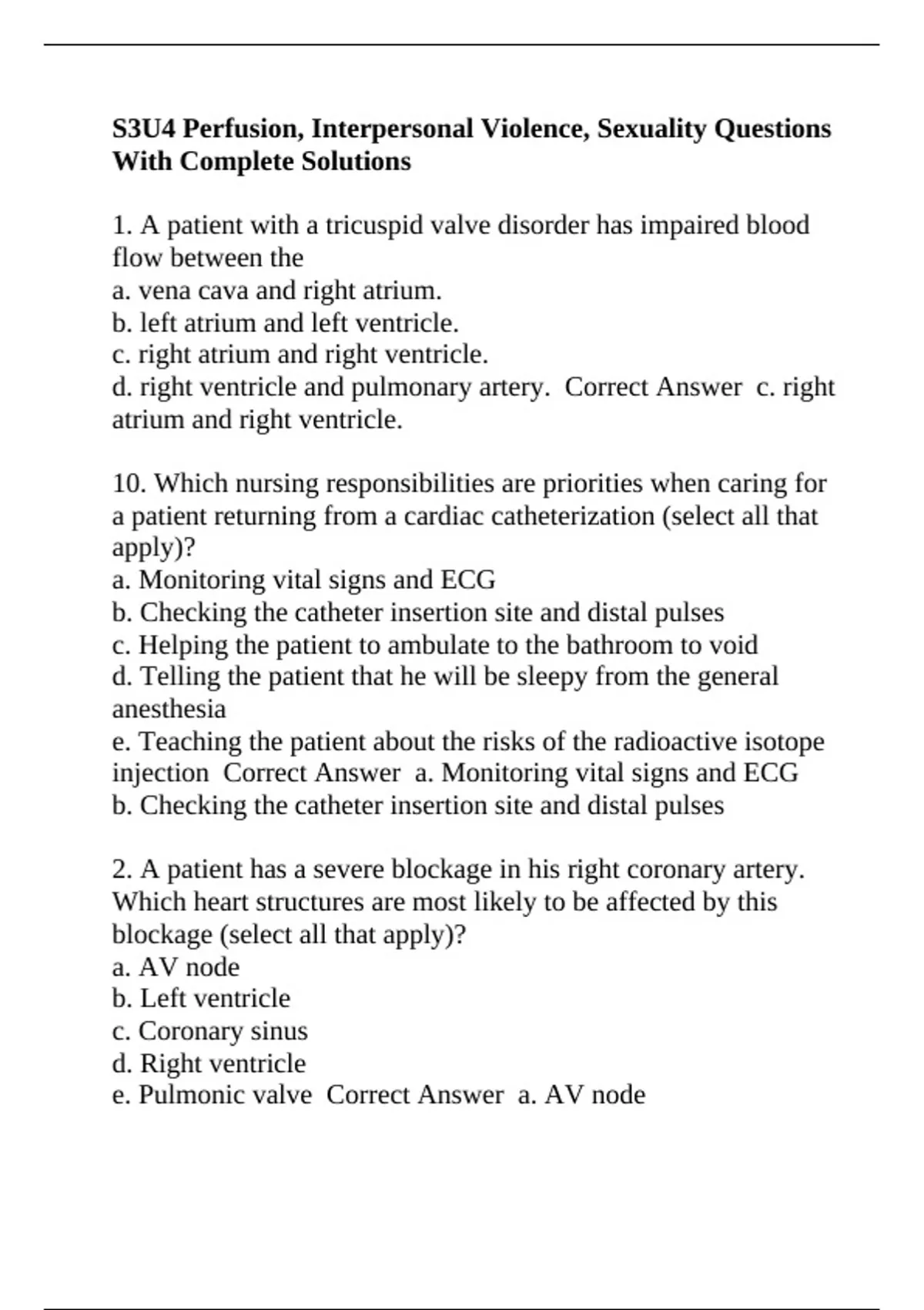 d. right ventricle and pulmonary artery. Correct Answer c. right