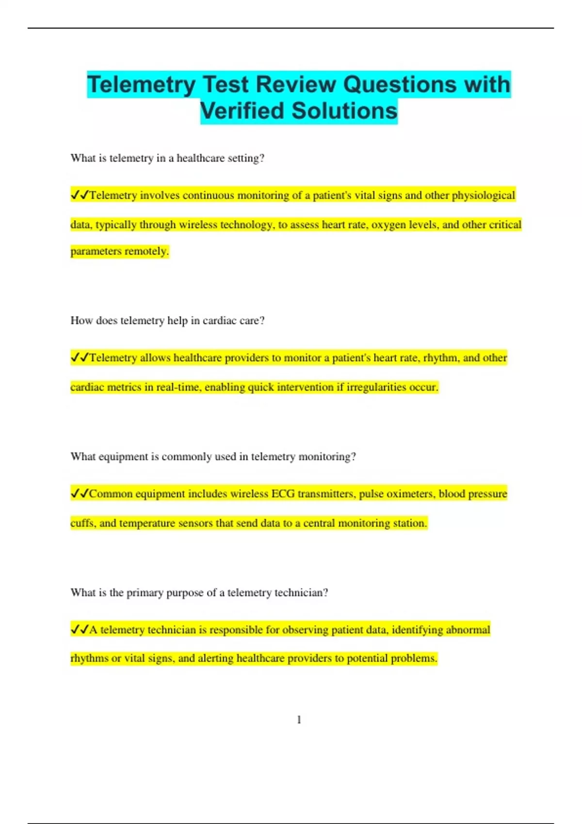 ✔✔Telemetry allows healthcare providers to monitor a patient's heart rate, rhythm, and other