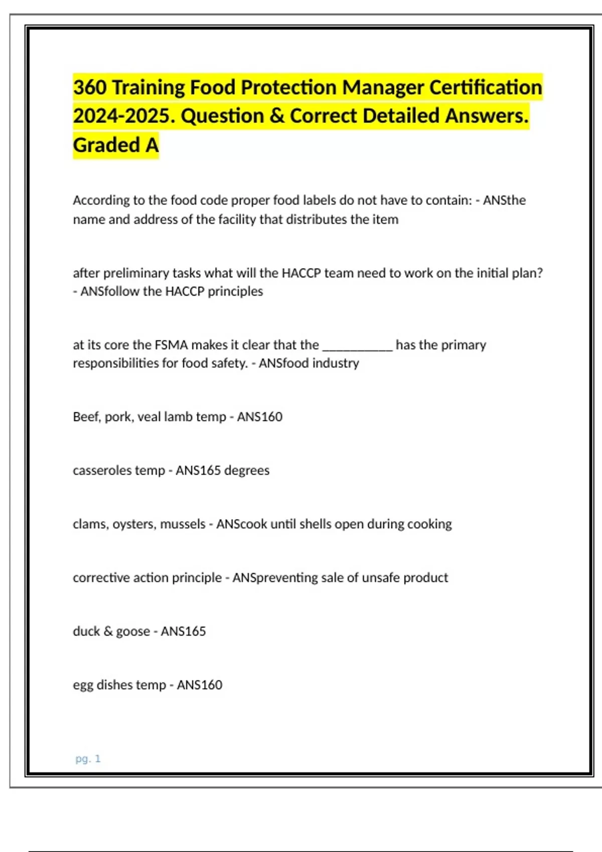 360 Training Food Protection Manager Certification . Question & Correct Detailed Answers. Graded A (2).docx 1. Document information