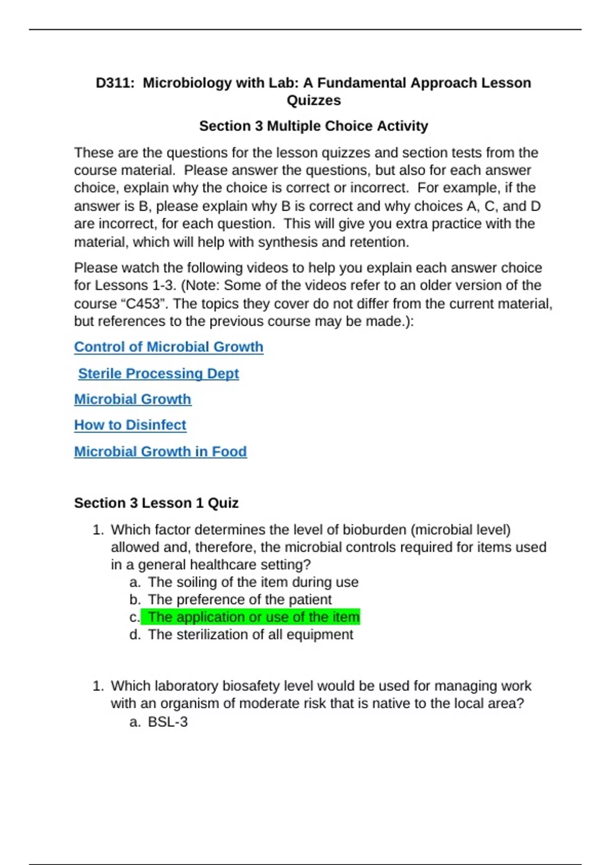 1. Which laboratory biosafety level would be used for managing work