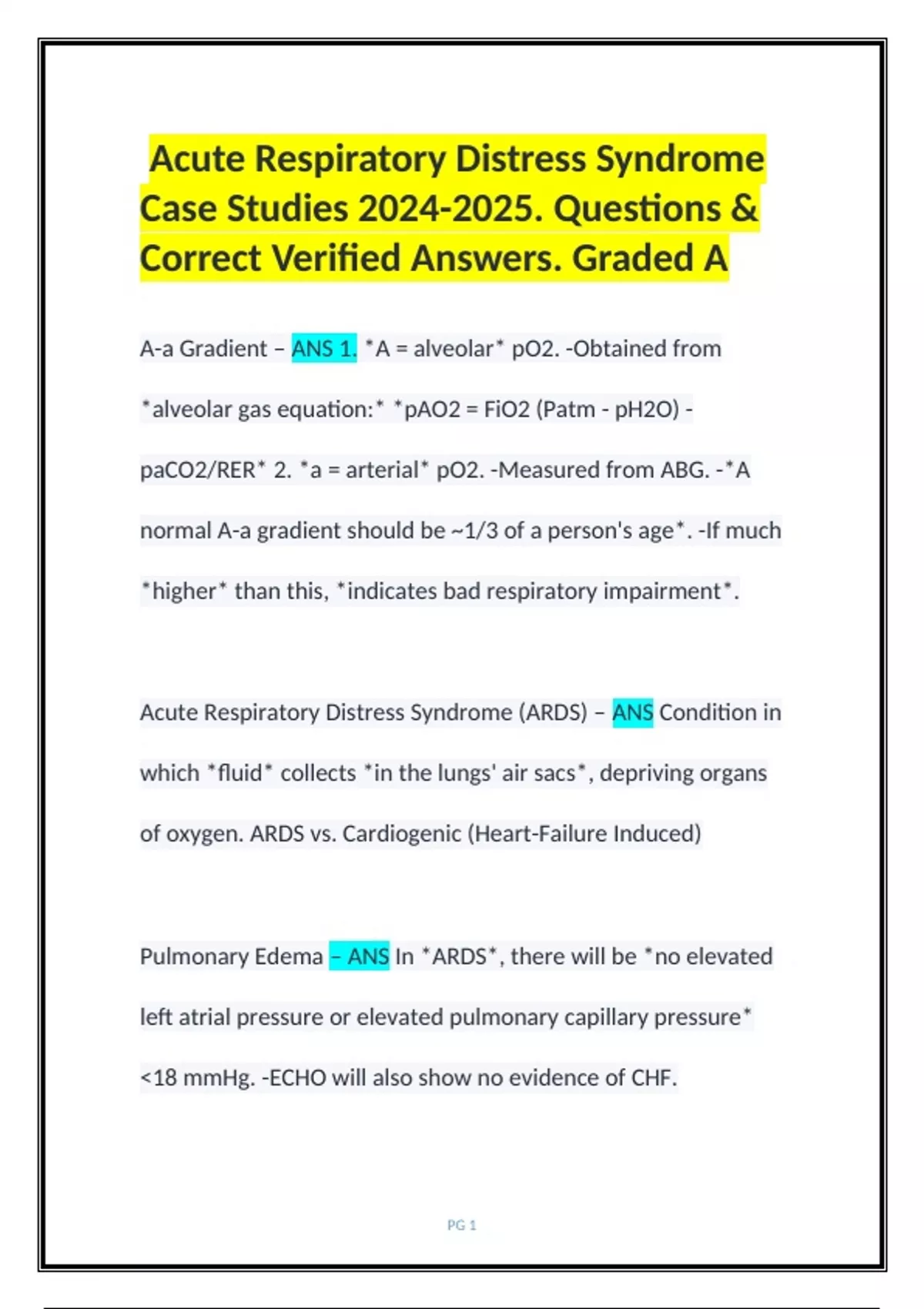 Pulmonary Edema – ANS In *ARDS*, there will be *no elevated