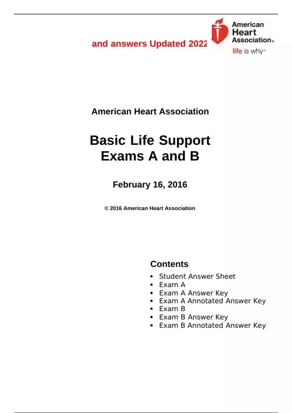Basic Life Support Exam A & B complete questions and answers Updated 2022.docx