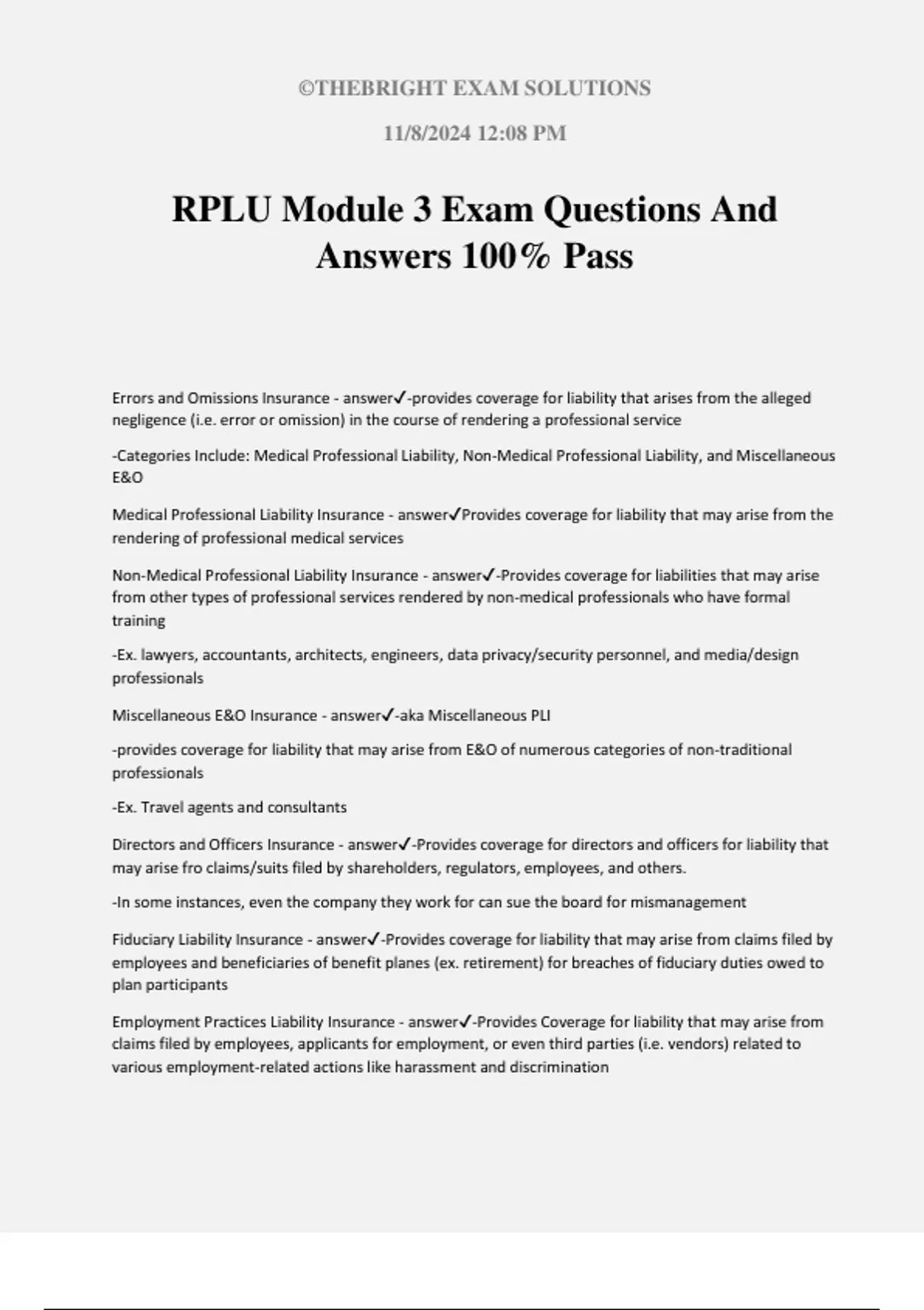 Miscellaneous E&O Insurance - answer✔-aka Miscellaneous PLI