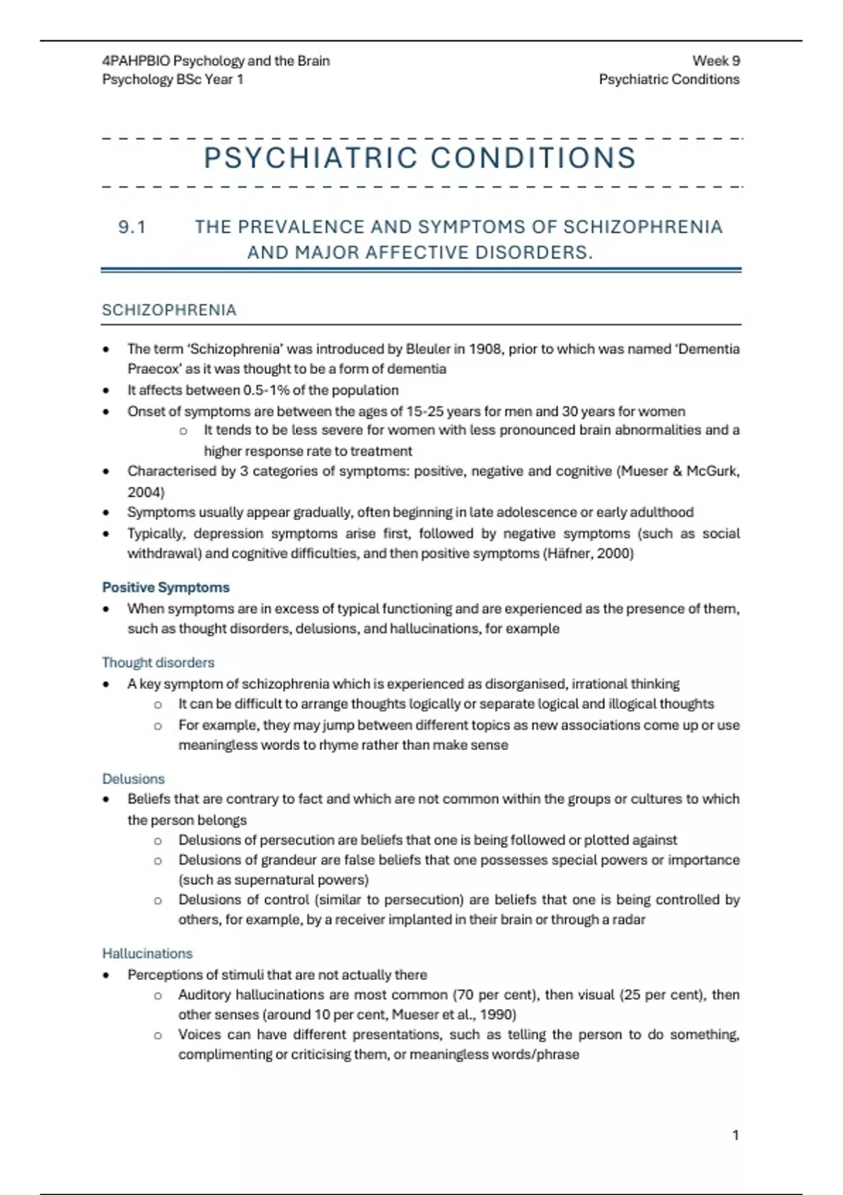 Psychology BSc Year 1 Psychiatric Conditions