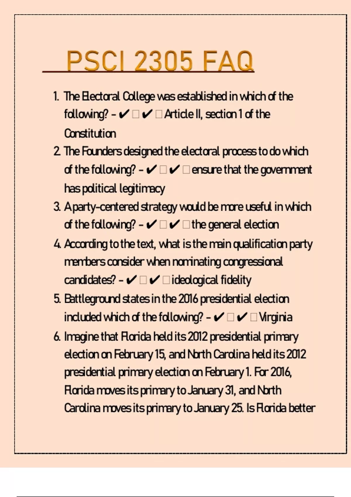 PSCI 2305 Frequently Asked Questions With Well And Correct Answers