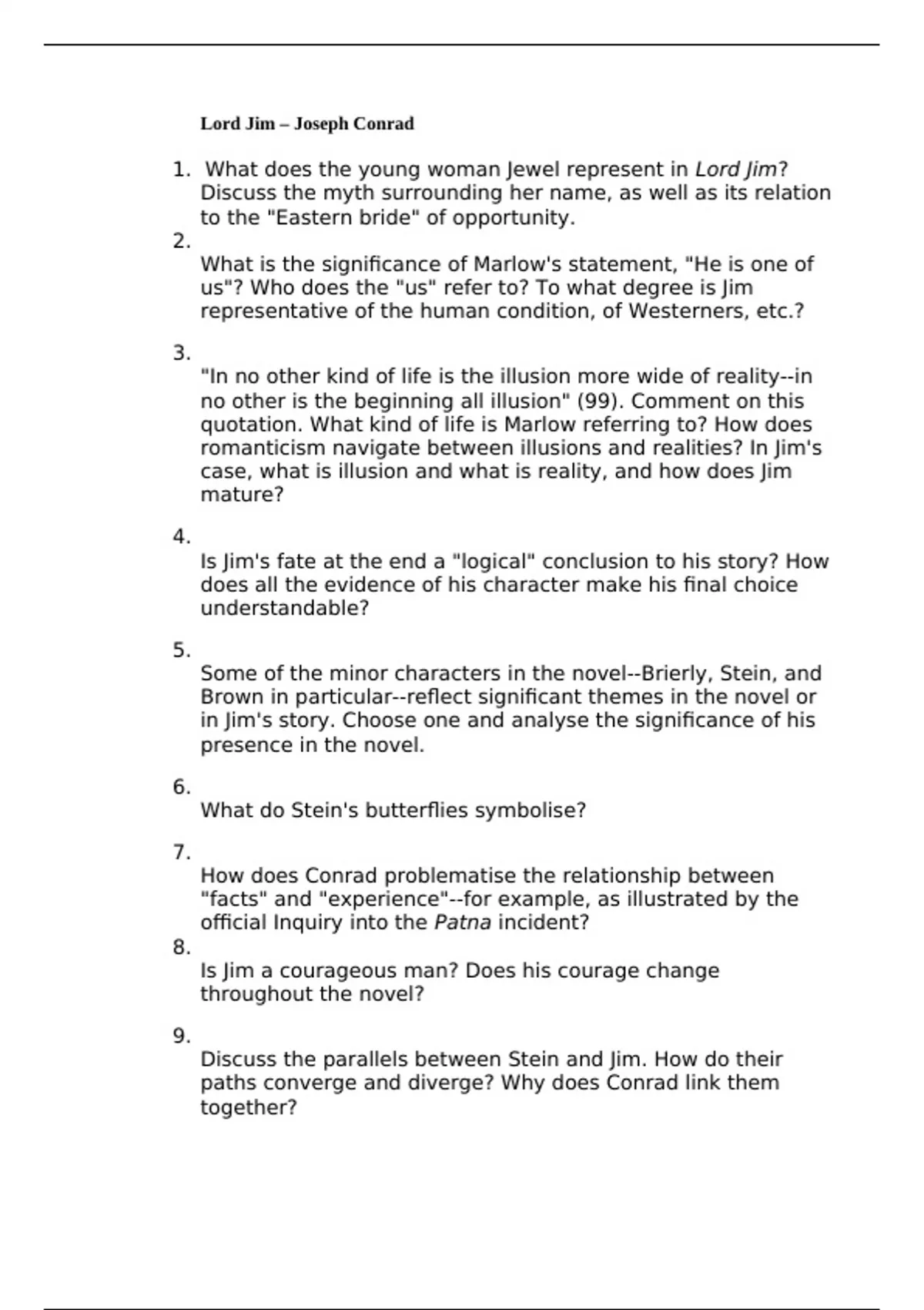 Revision notes on "Lord Jim" A LEVEL ENGLISH LITERATURE