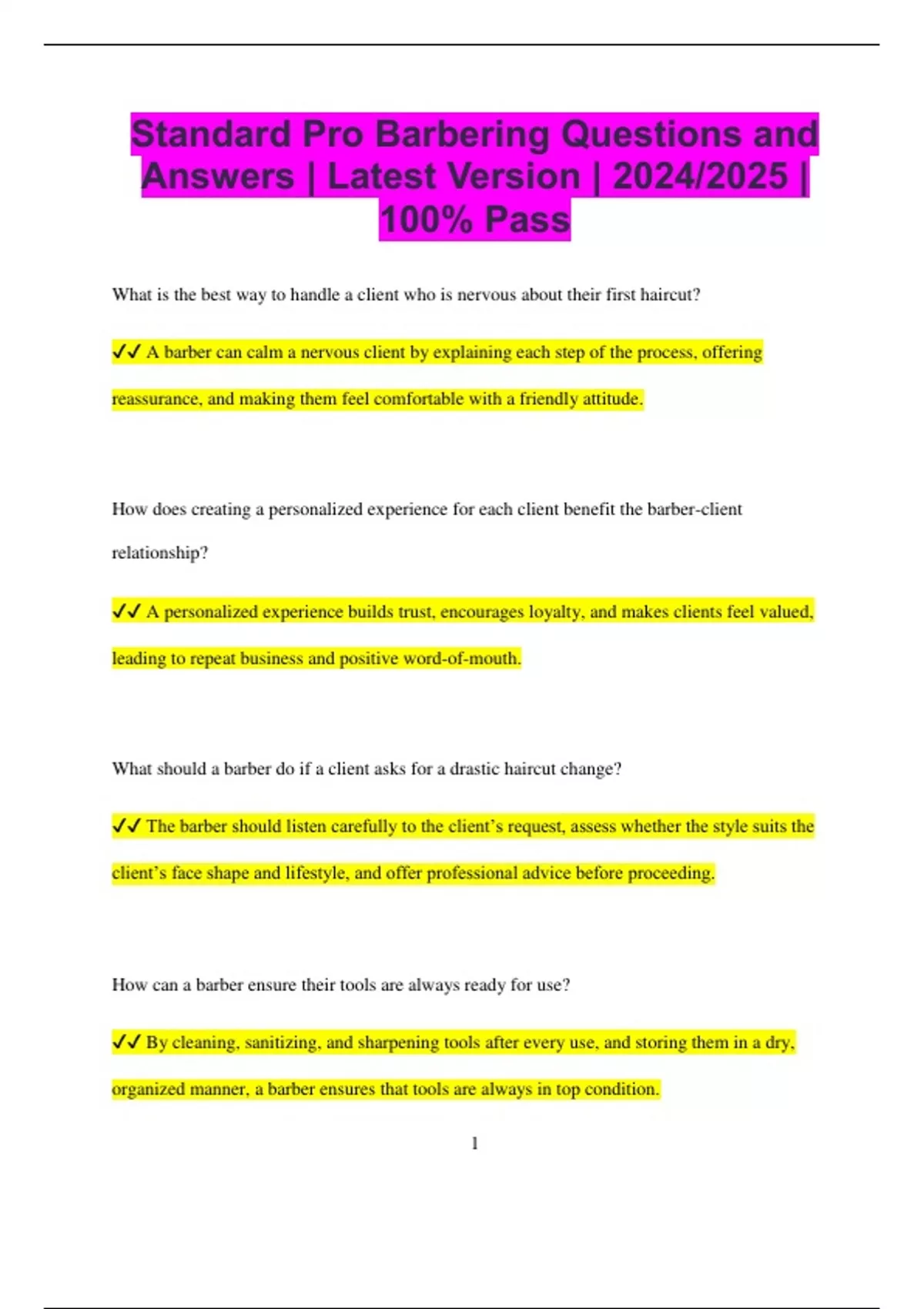 ✔✔ A barber can calm a nervous client by explaining each step of the process, offering
