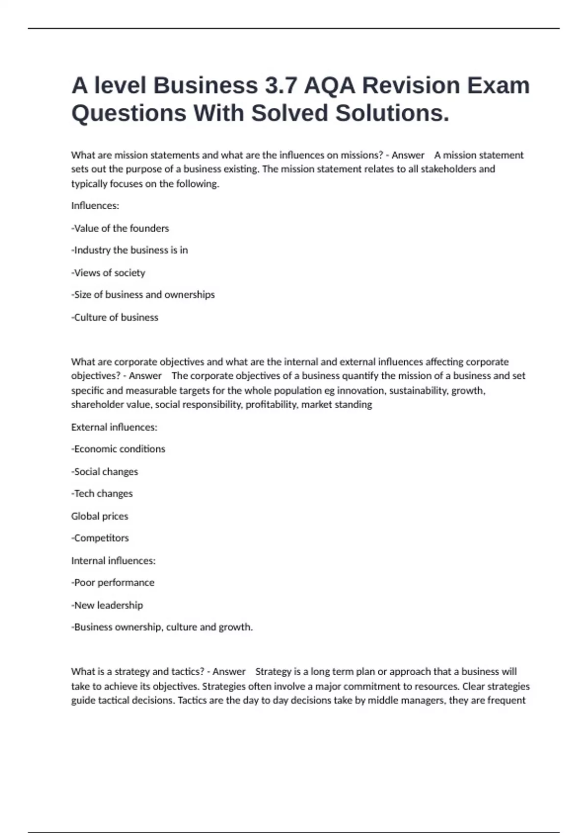 What is a strategy and tactics? - Answer Strategy is a long term plan or approach that a business will
