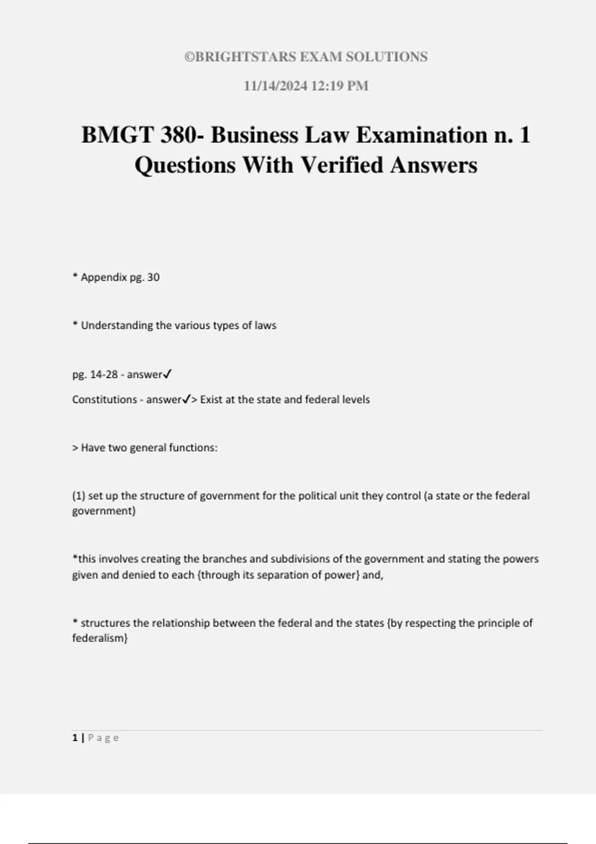 BMGT 380- Business Law Examination n. 1