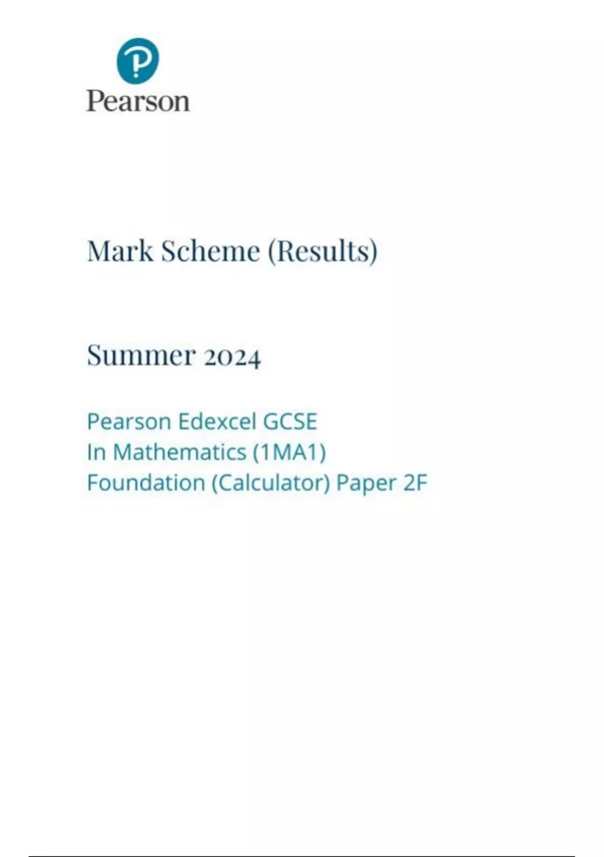 Pearson Edexcel GCSE In Mathematics (1MA1) Foundation (Calculator) Paper 2F mark scheme june 2024 1ma1-2f