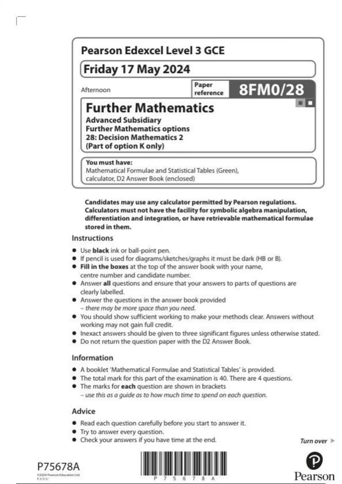 Pearson Edexcel As Furthur Maths 2024