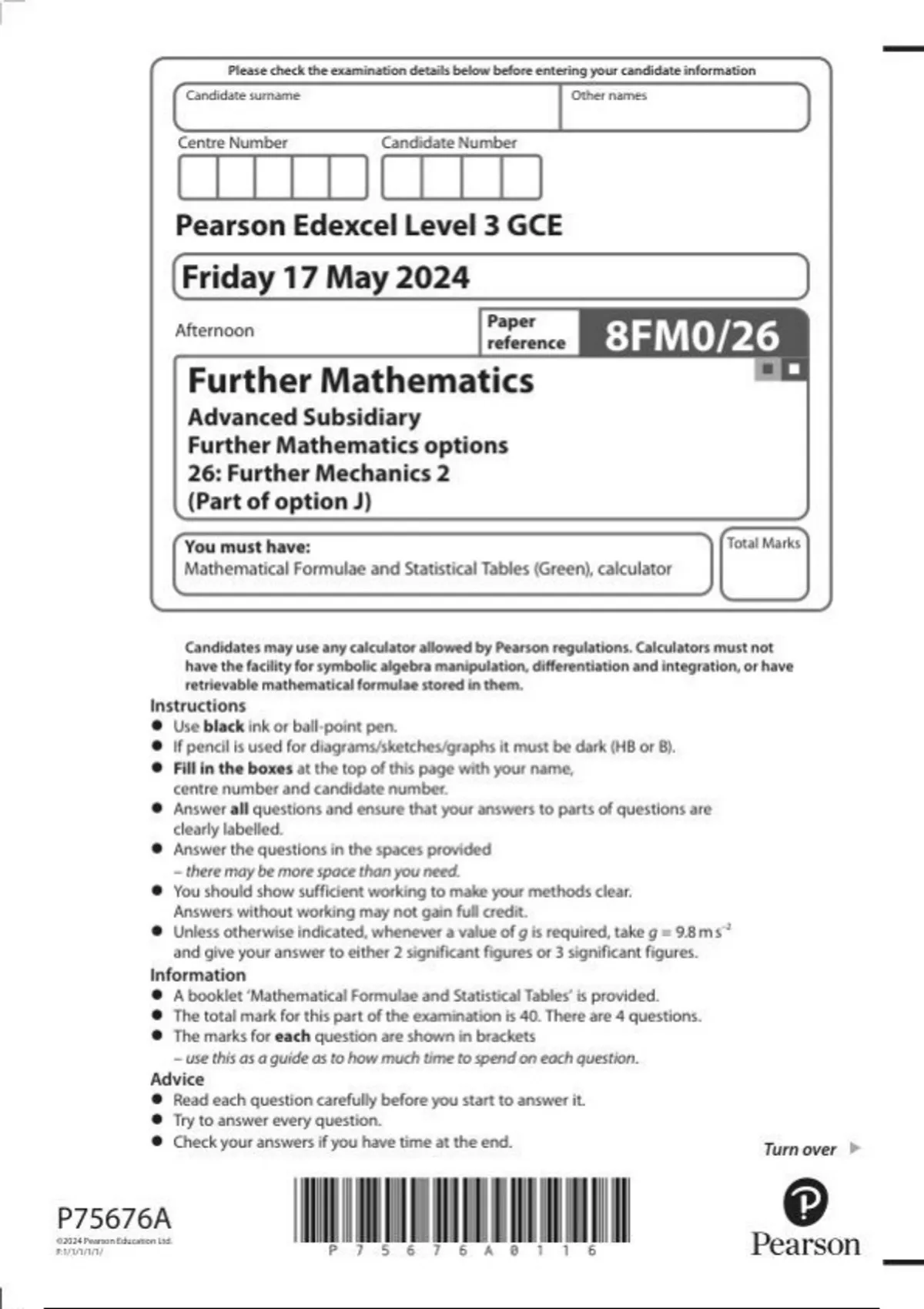 Pearson Edexcel As Furthur Maths 2024