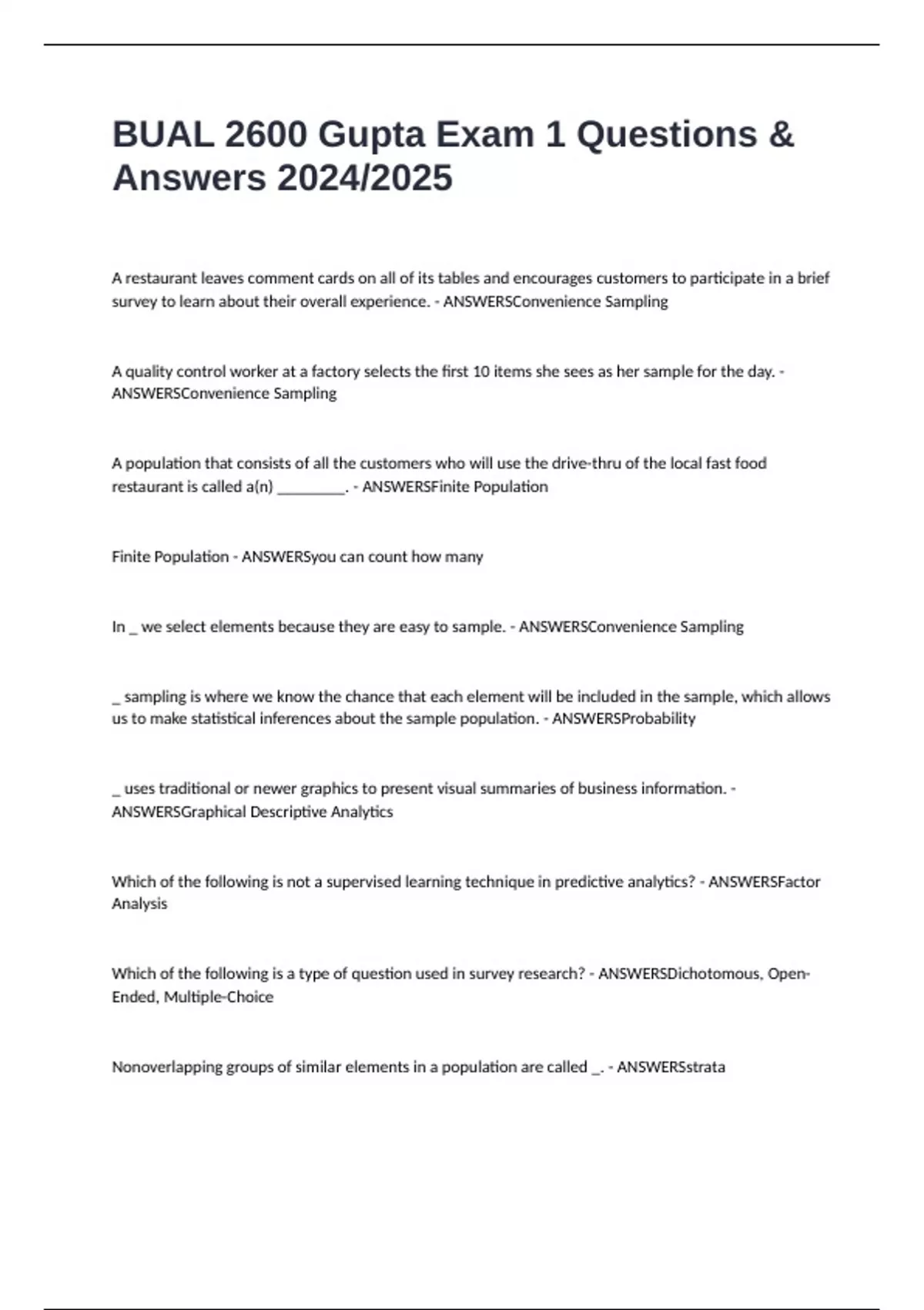 ANSWERSConvenience Sampling