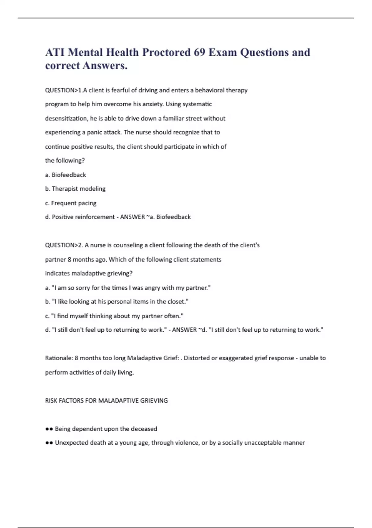 ATI Mental Health Proctored 69 Exam Questions and correct Answers.