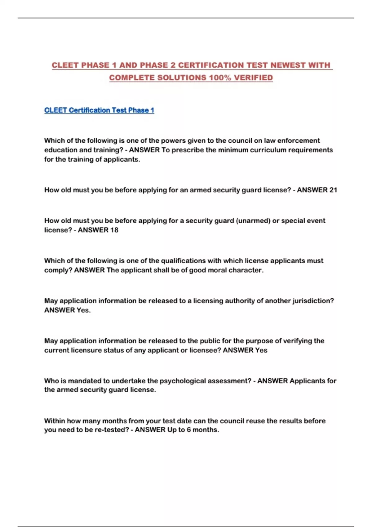 CLEET PHASE 1 AND PHASE 2 CERTIFICATION TEST NEWEST WITH