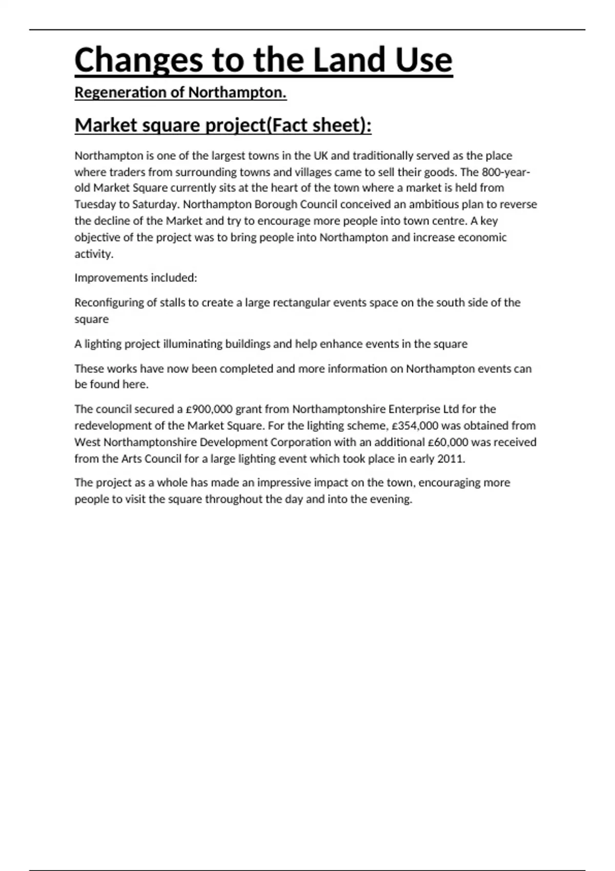redevelopment of the Market Square. For the lighting scheme, £354,000 was obtained from