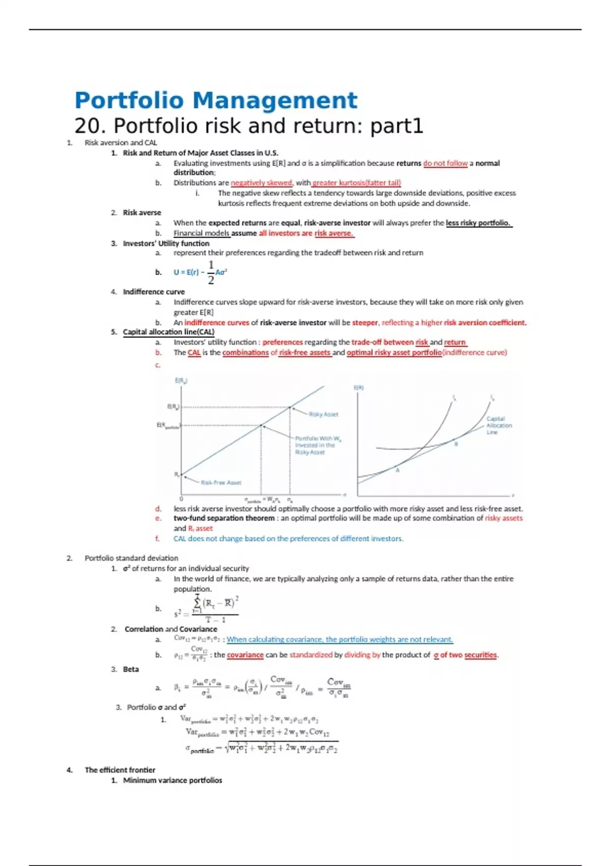 1. CAL - capital allocation line