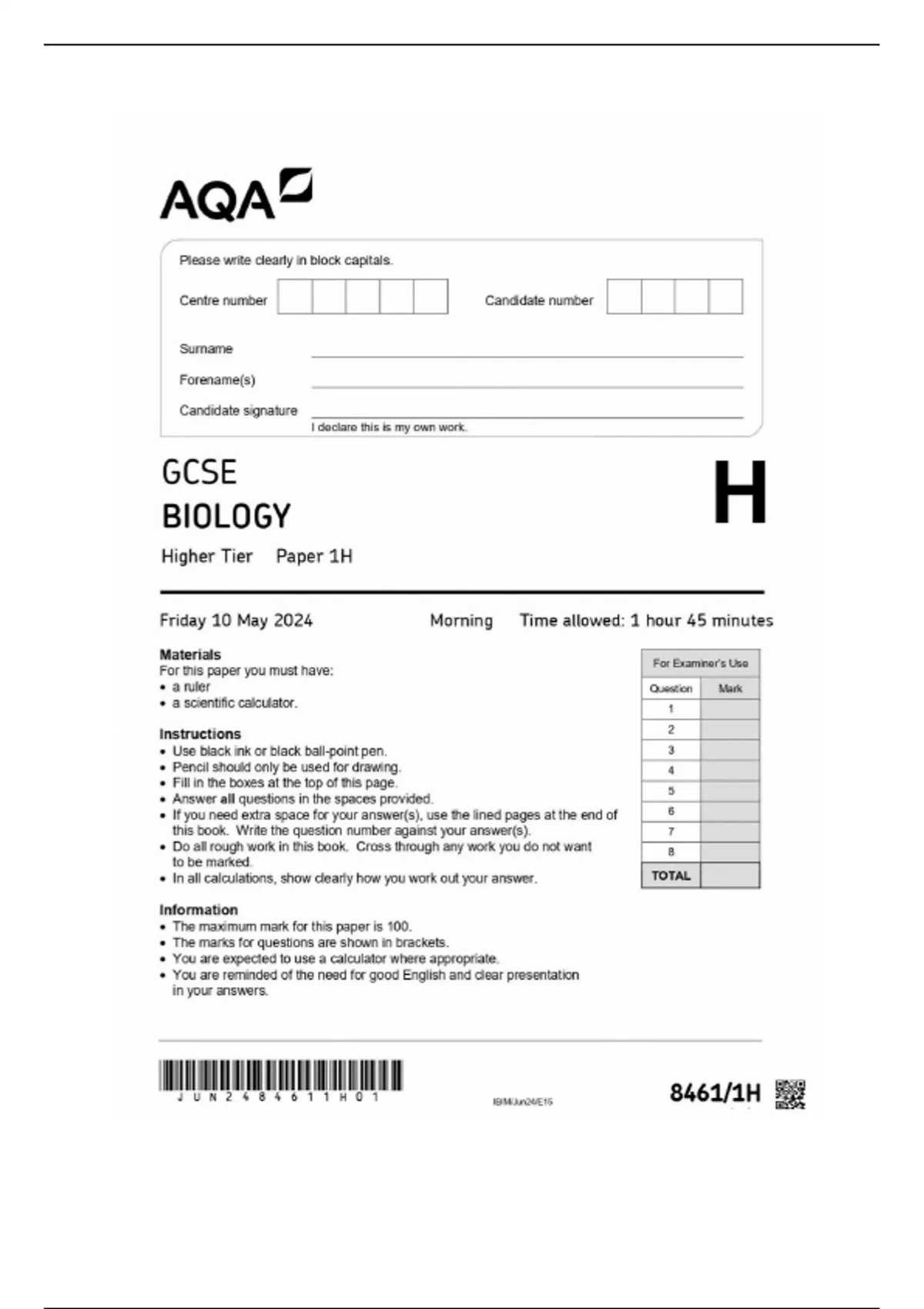 gcse aqa may 2025 higher tier biology paper 1 bundle questions & answers