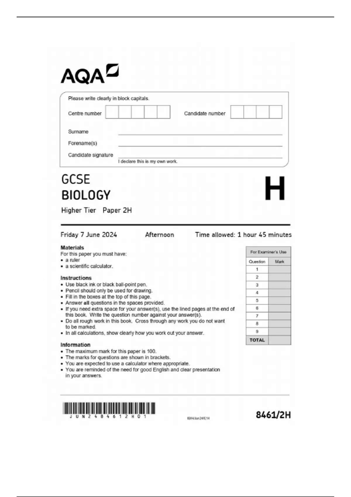 this is the actual questions gcse aqa june 2025 higher tier biology paper 2 qp 2025 exam 100% correct