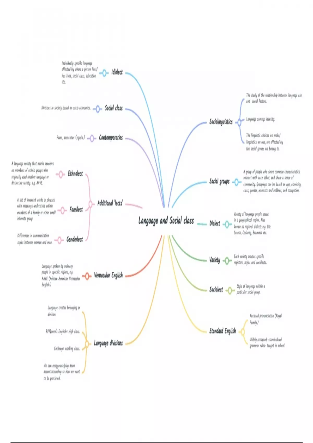 A mind map on Language and Social Class.